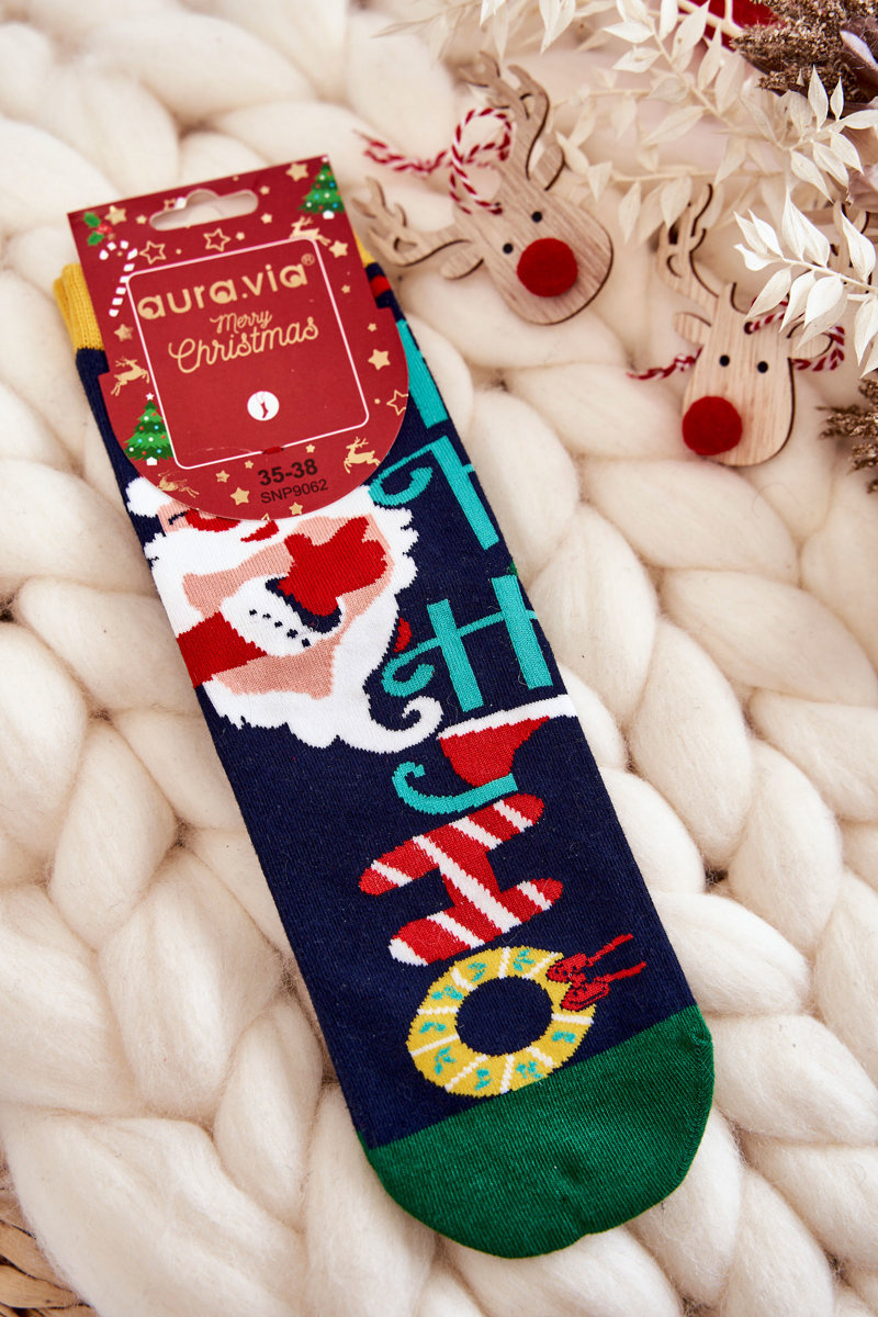Skarpety Damskie Świąteczny Wzór "Ho Ho Ho" Granatowe