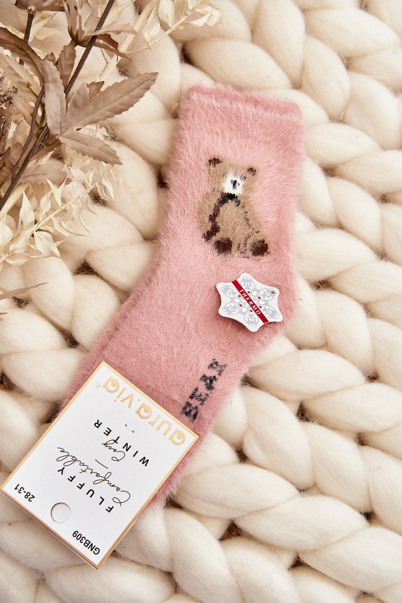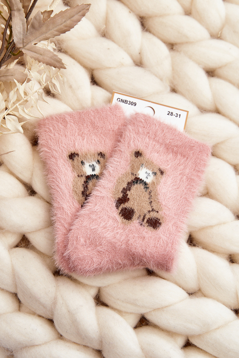 Skarpety Dziecięce Futrzane Z Misiem Różowe