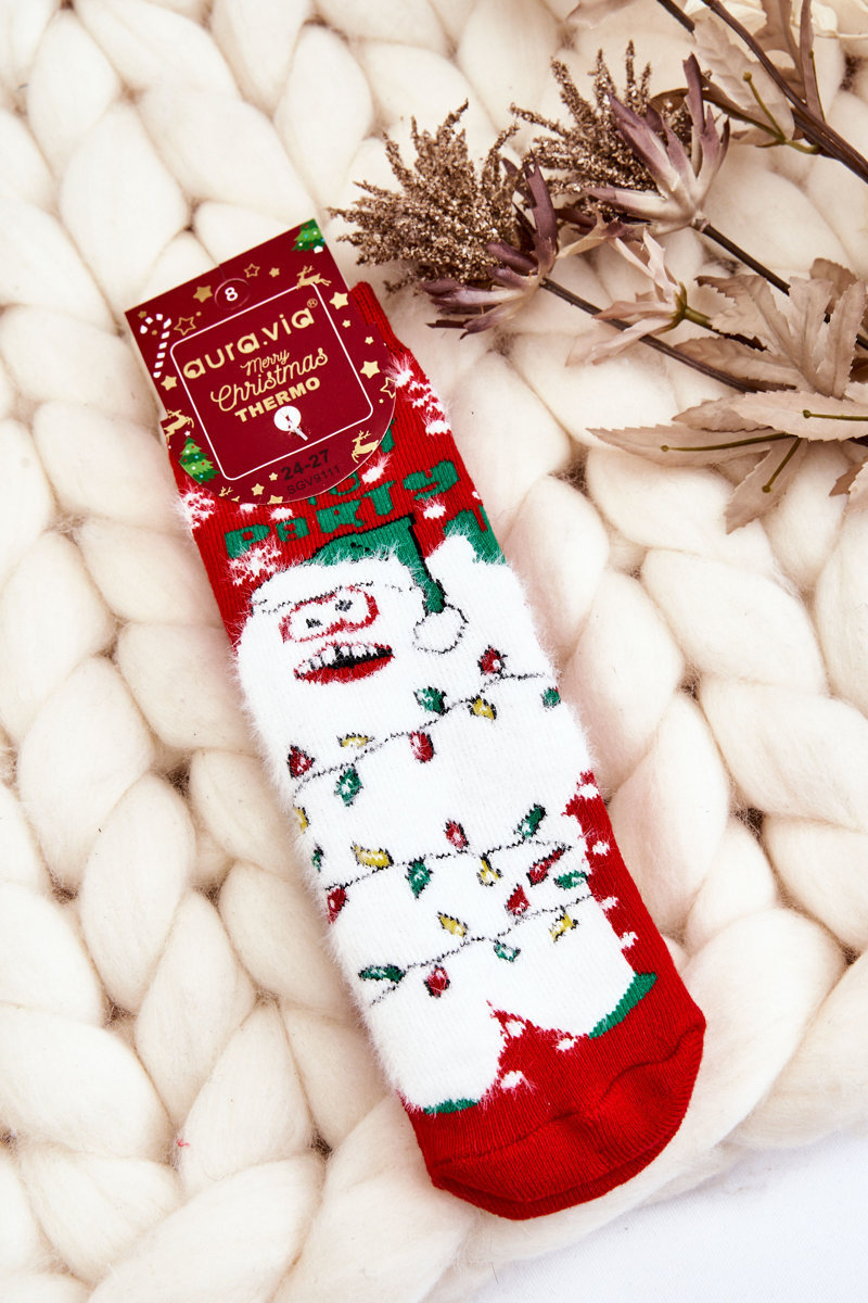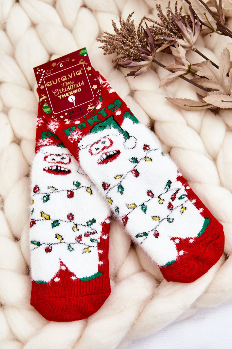 Skarpety Dziecięce Świąteczne Bawełniane Termoaktywne Yeti Czerwone
