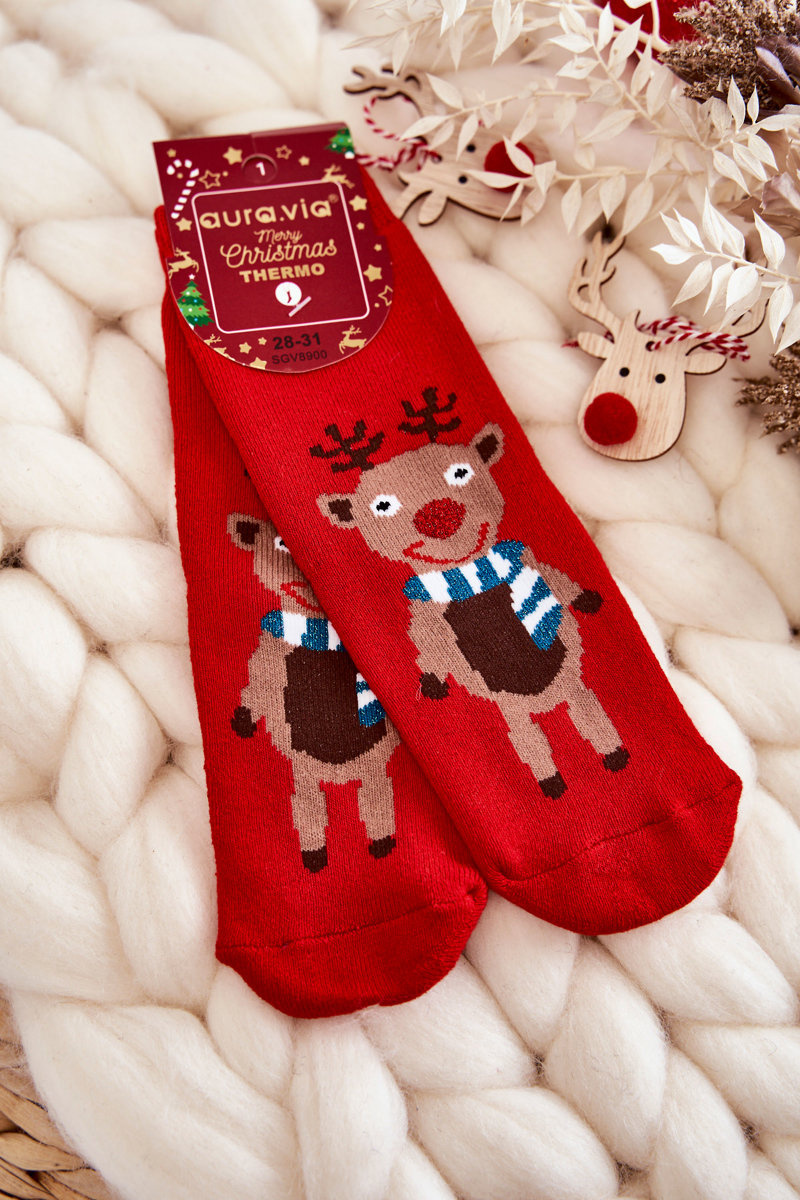 Skarpety Dziecięce Termoaktywne Świąteczne Renifer Czerwone