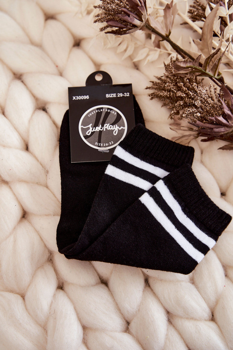 Opinie o Skarpety Młodzieżowe Bawełna Sportowe Z Paskami Czarne