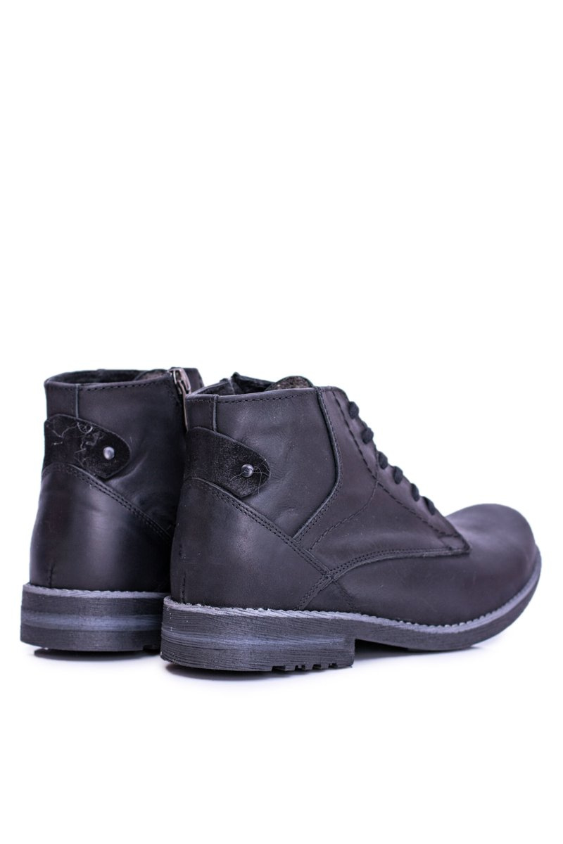 Skórzane Botki Męskie Z Zamkiem Ocieplane Czarne Komodo 731