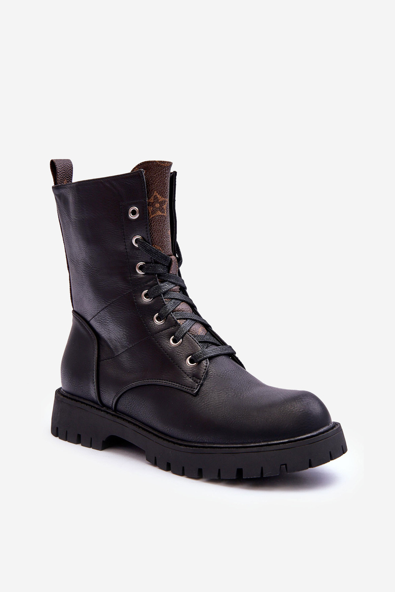 Uwielbianym i najczęściej wybieranym modelem przez kobiety są botki na płaskim, stabilnym obcasie. Posiadają wiele atutów, jednak głównym z nich jest zapewnienie wysokiego komfortu podczas użytkowania. Botki te zostały wykonane eko skóry. Zapinane na suwak z boku oraz wzbogacone dodatkowym sznurowaniem. Osadzone na płaskim obcasie i platformie. Zapiętek jest usztywniany. Wnętrze ocieplone kocem obuwniczym.