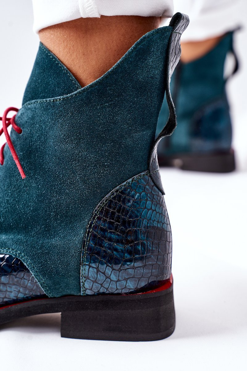 Skórzane Botki Z Krokodylim Wzorem Zielone Cheyenne