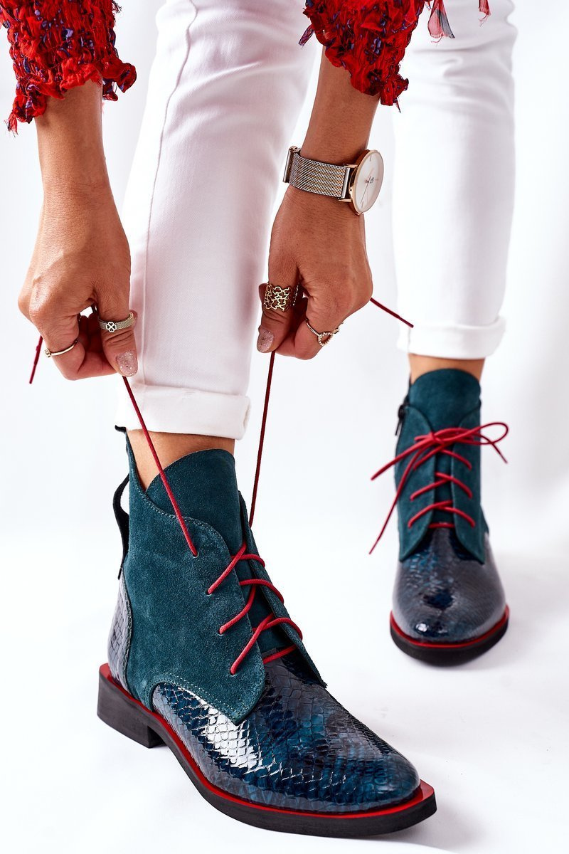 Opinie o Skórzane Botki Z Krokodylim Wzorem Zielone Cheyenne