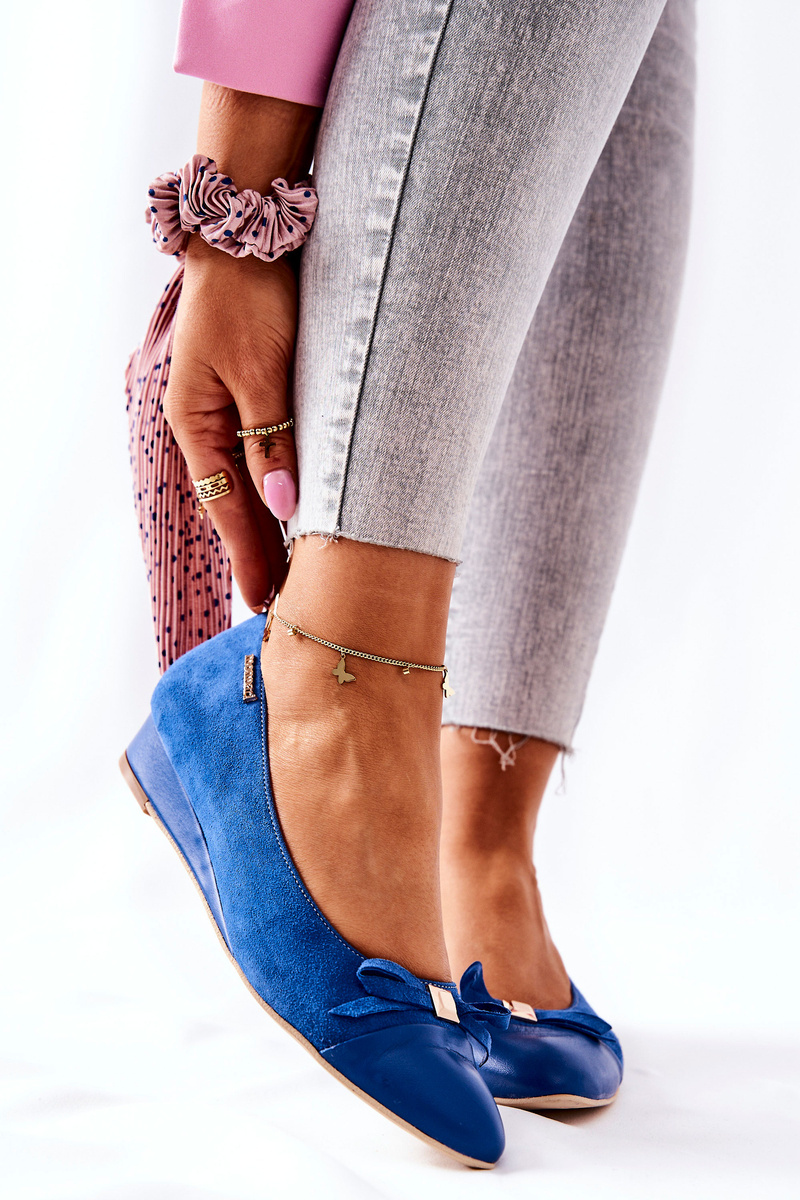 Skórzane Czółenka Na Koturnie Monnari 0590-M12 Niebieskie