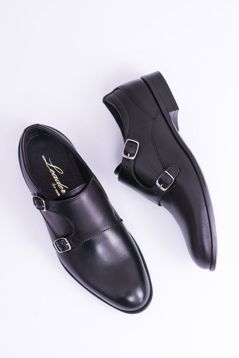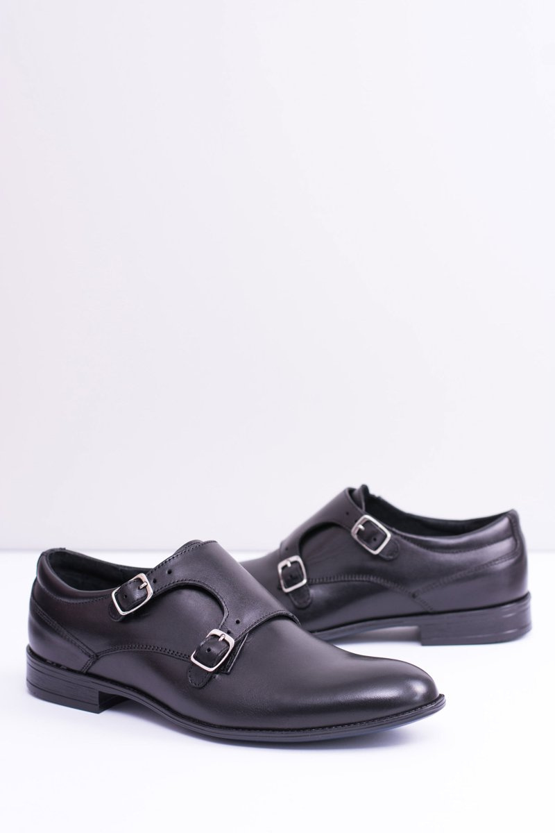 Skórzane Eleganckie Męskie Półbuty Monk Czarne