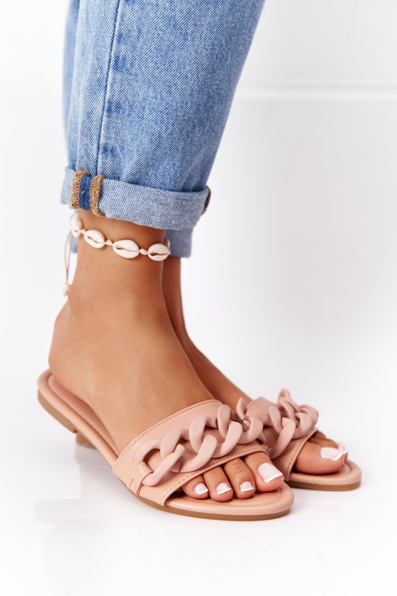 Skórzane Klapki Z Łańcuchem Camel Step By Step