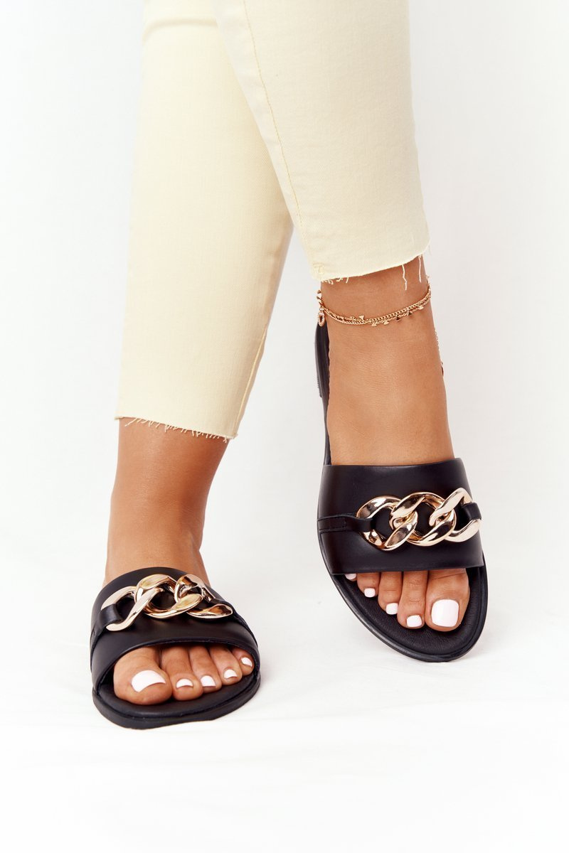 Skórzane Klapki Z Łańcuszkiem Nicole 2652 Czarne