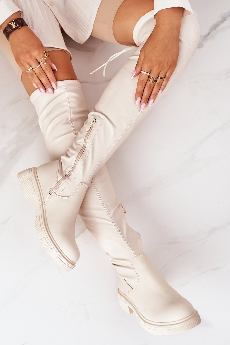 Skórzane Kozaki Za Kolano Beżowe Selina