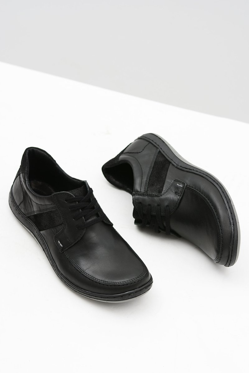 Skórzane Męskie Klasyczne Czarne Półbuty Rocco