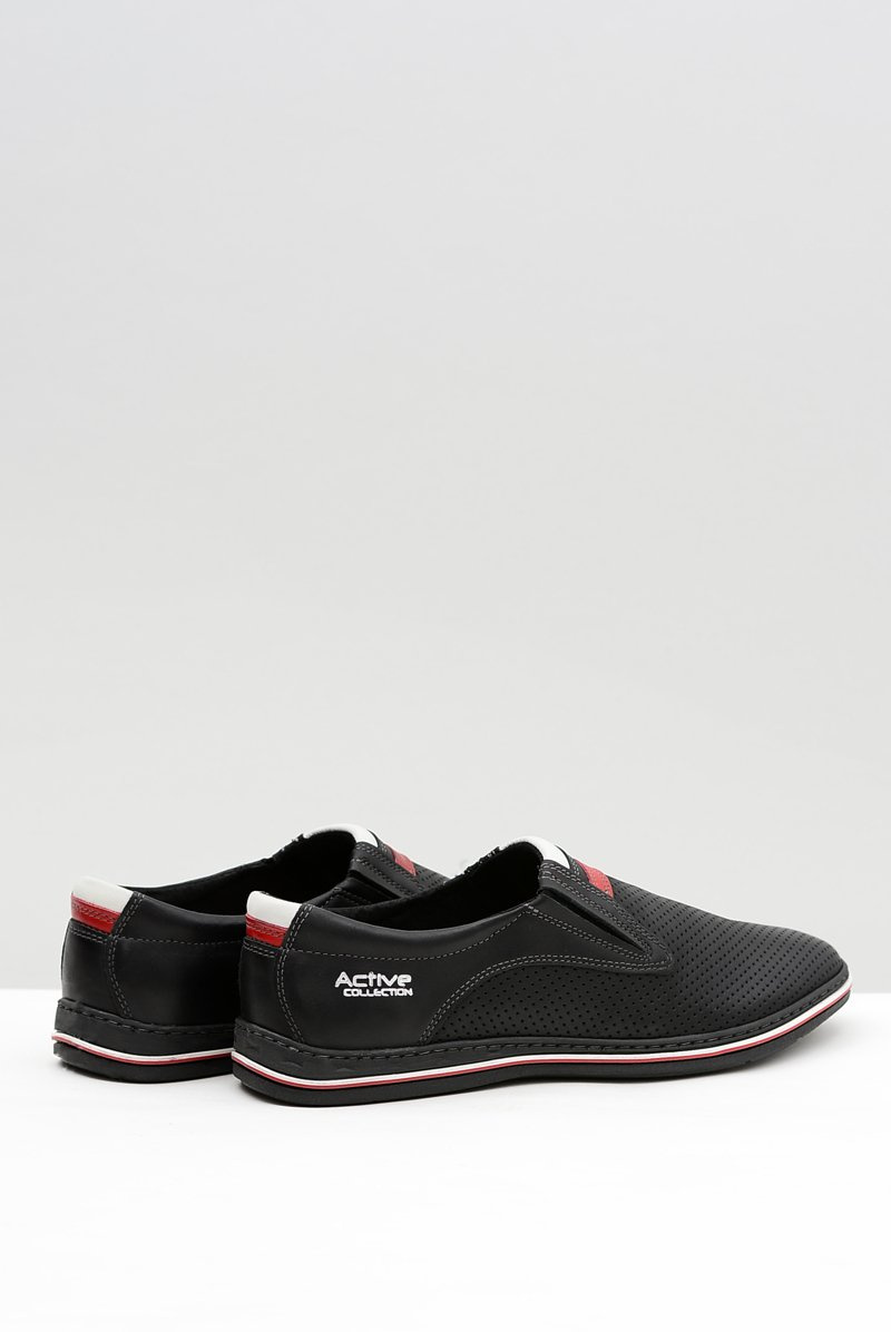 Skórzane Męskie Wsuwane Czarne Półbuty Dziurki Mello