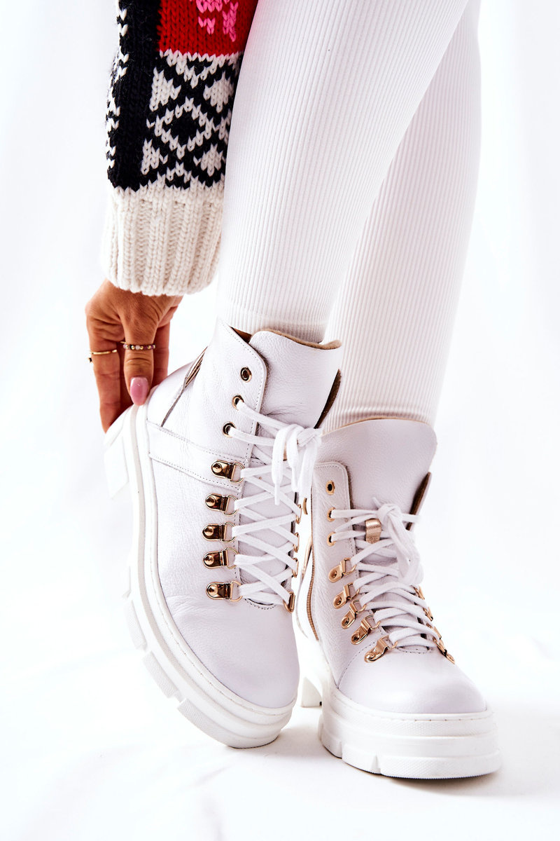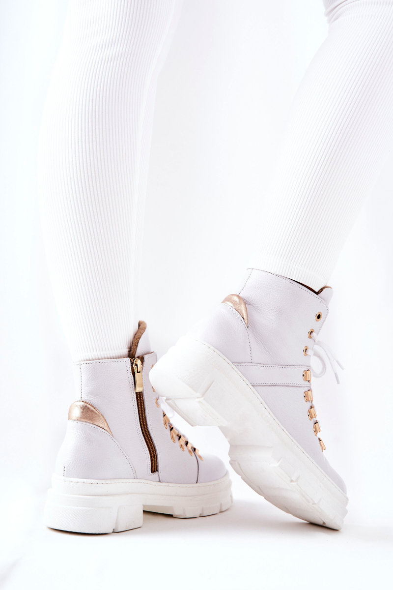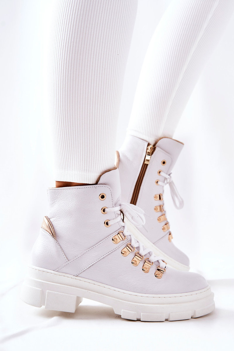 Opinie o Skórzane Ocieplane Botki Białe Brescia