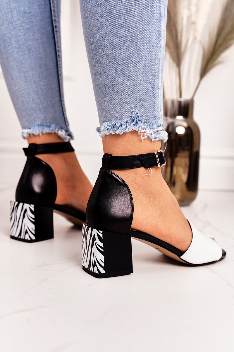 Skórzane Sandały Na Obcasie Laura Messi 2285 Zebra Czarne