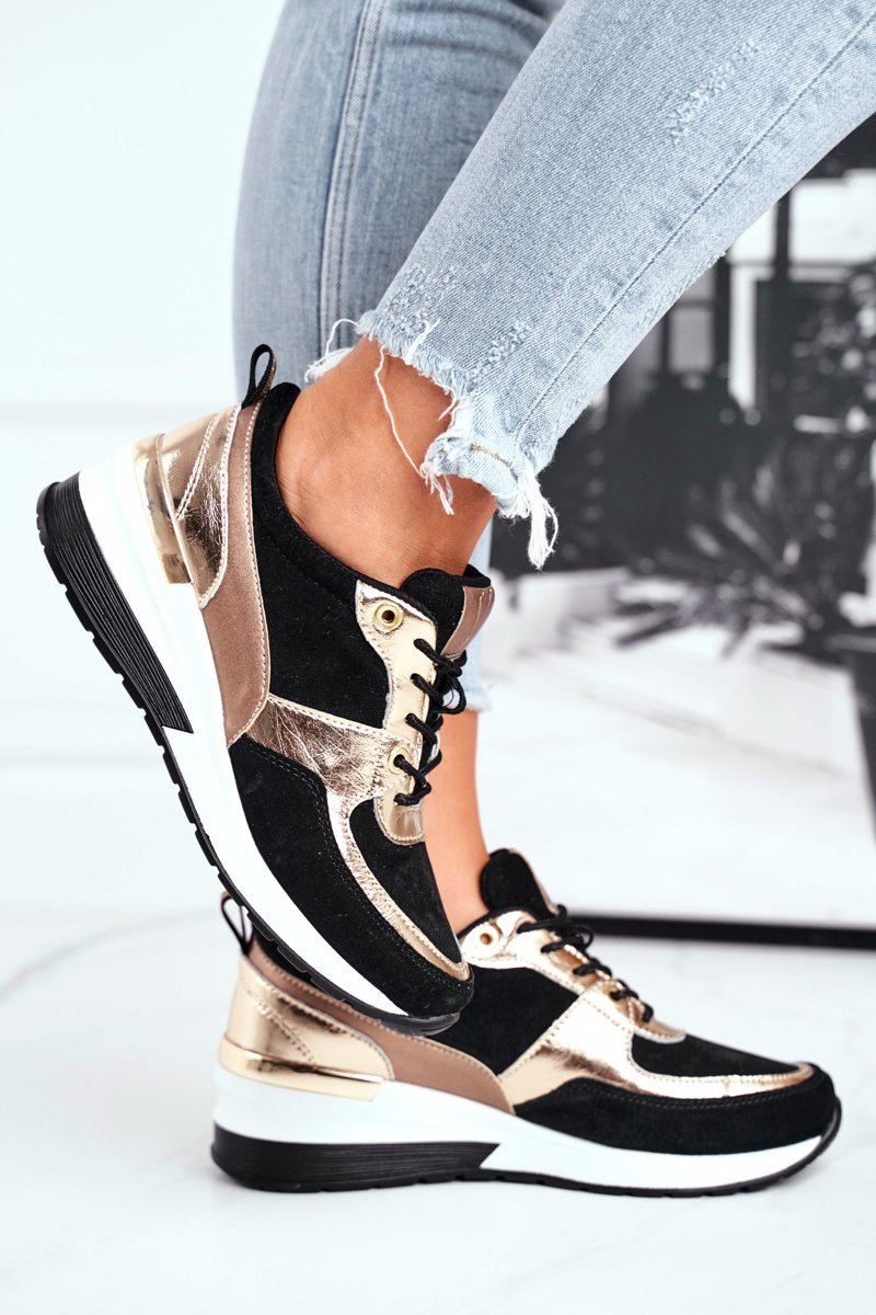 Skórzane Sneakersy Na Koturnie Vinceza 7777 Czarno-Złote