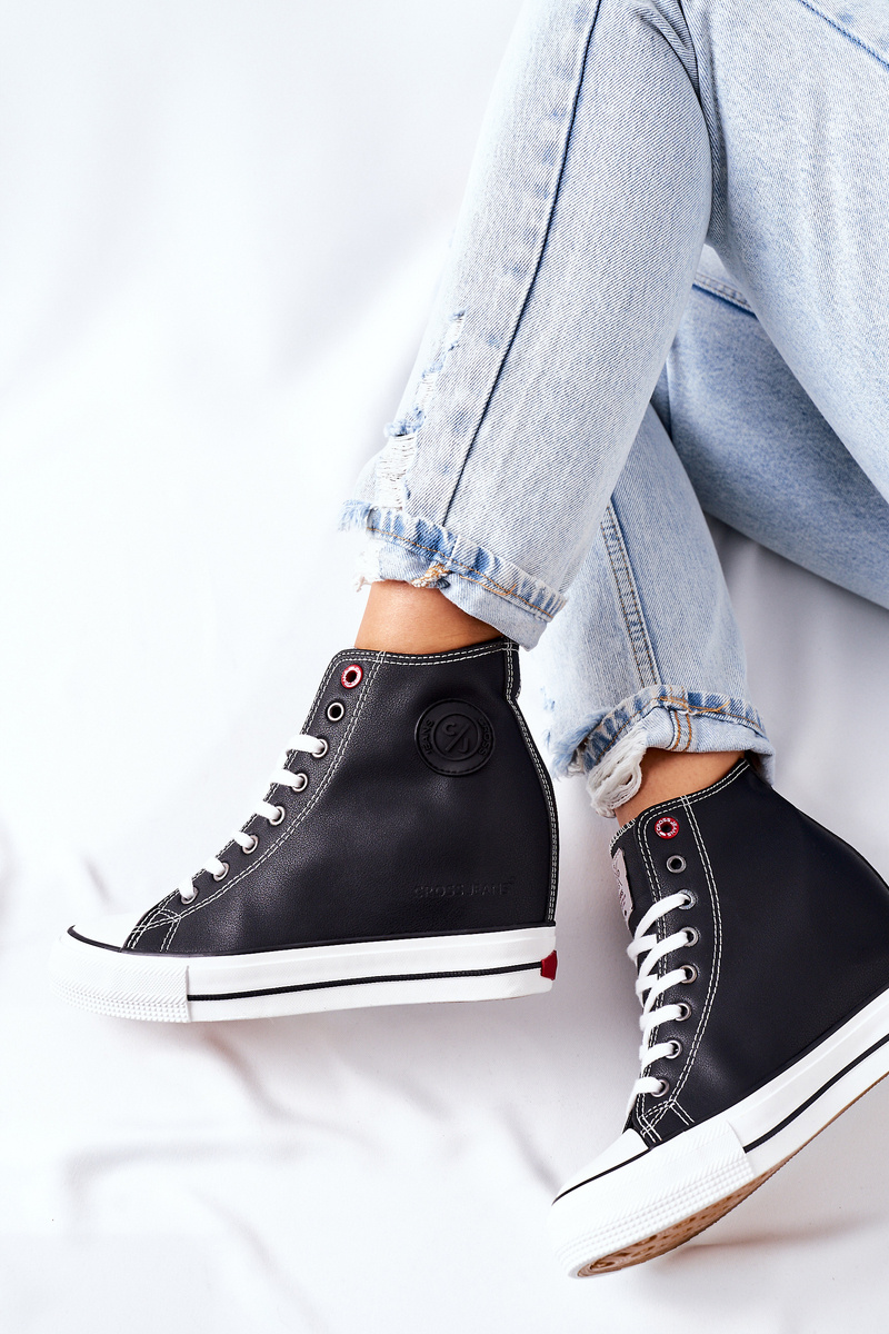Skórzane Trampki Na Koturnie Cross Jeans II2R4025 Czarne