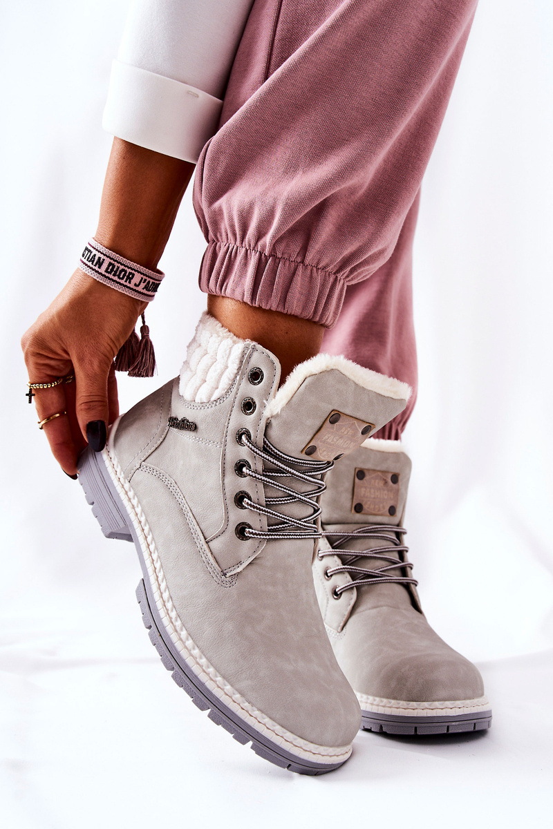 Skórzane Trapery Z Ociepleniem Jasnoszare Laralis
