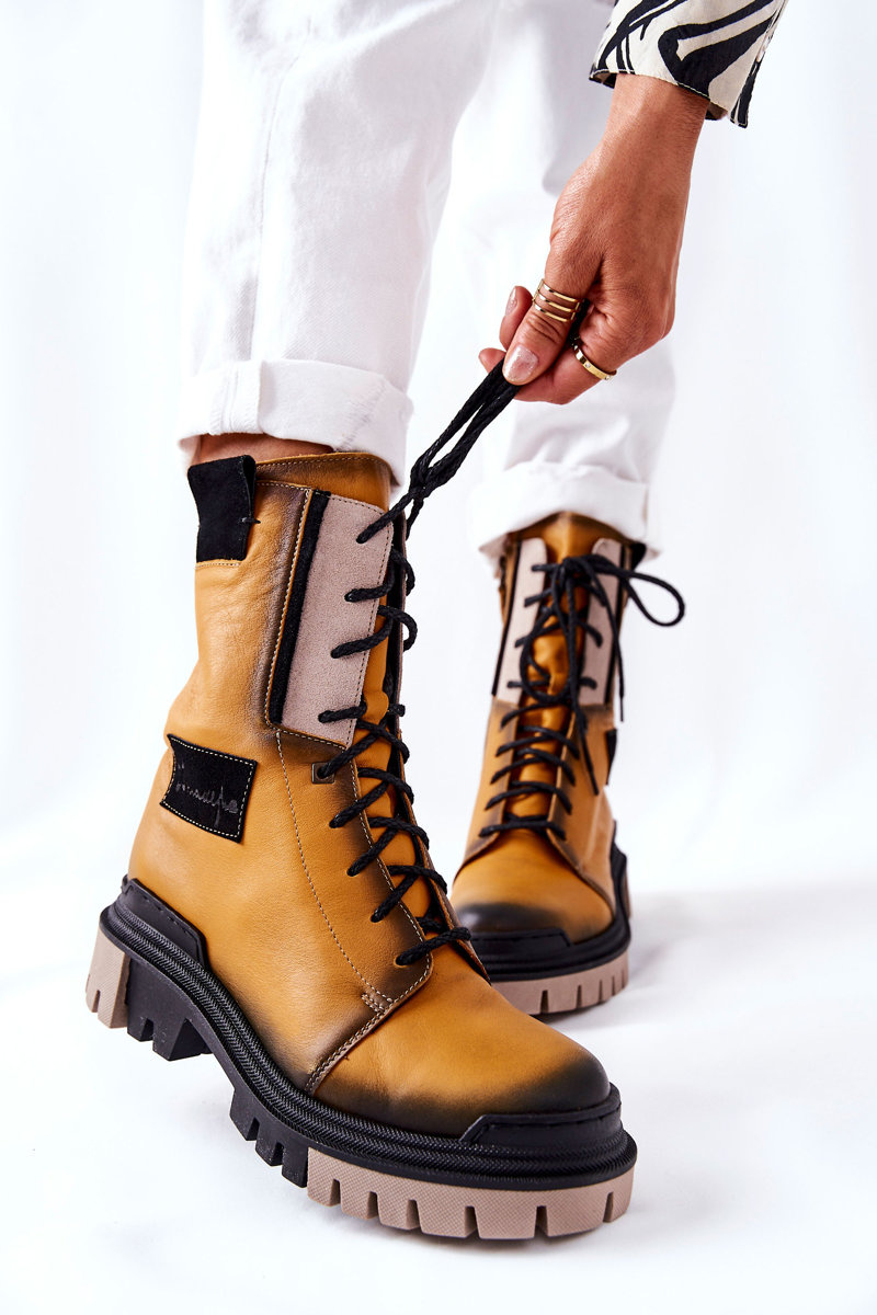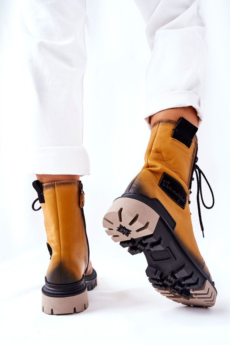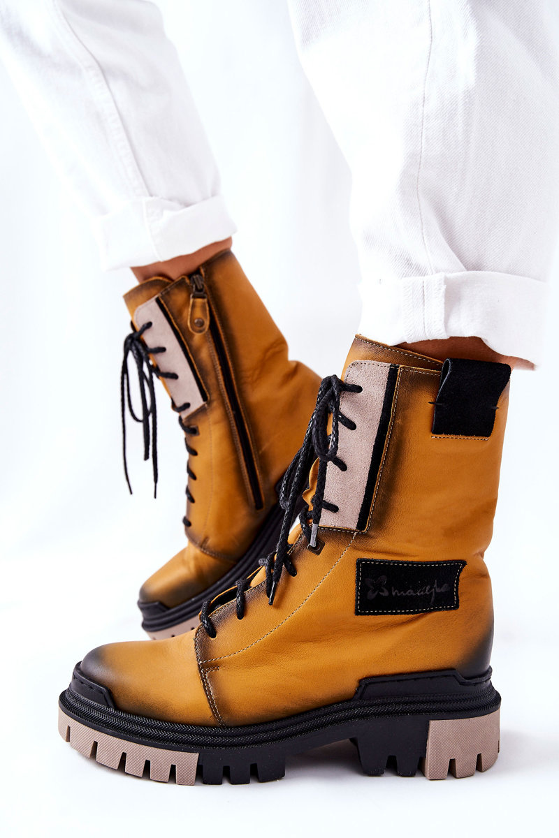 Skórzane Trzewiki Botki Ocieplane Maciejka Żółte 05113-07