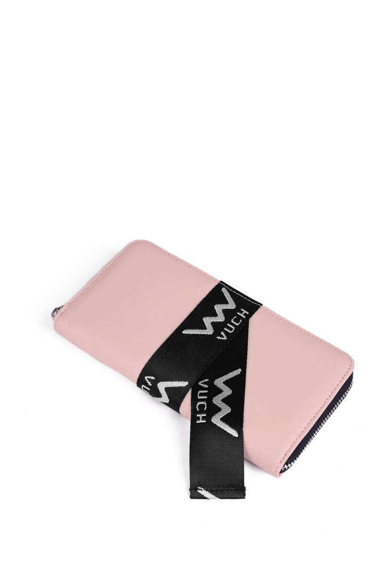 Piękny portfel wykonany z eko skóry z dodatkiem wszytego materiałowego paska z logo. Zapinany na suwak. W środku posiada mniejsze otwarte kieszenie na wizytówki czy karty kredytowe oraz miejsce na banknoty. Wewnątrz także znajduje się kieszeń zamykana na suwak na bilony. Wyjątkowy model, który zachwyci niejedną osobę powinien być Twój! Nie zwlekaj i kup już dziś!