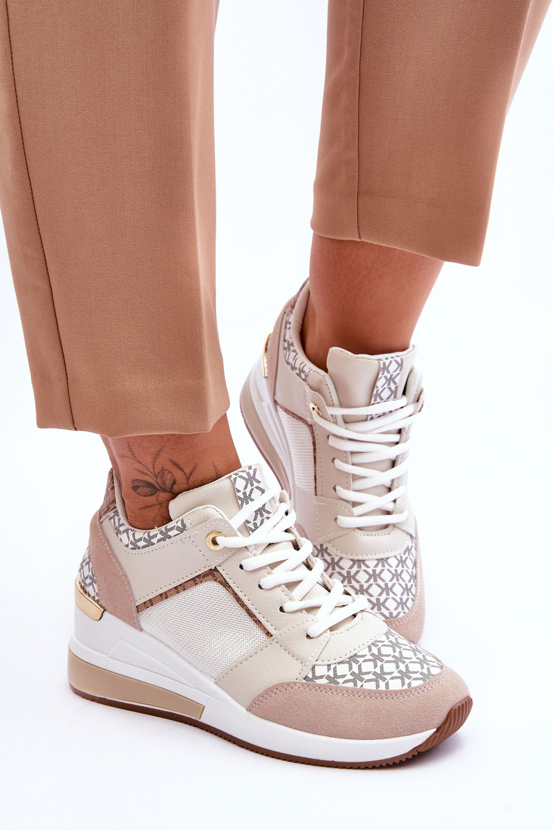 Sneakersy Buty Sportowe Damskie Koturn Biało-Beżowe Nomera