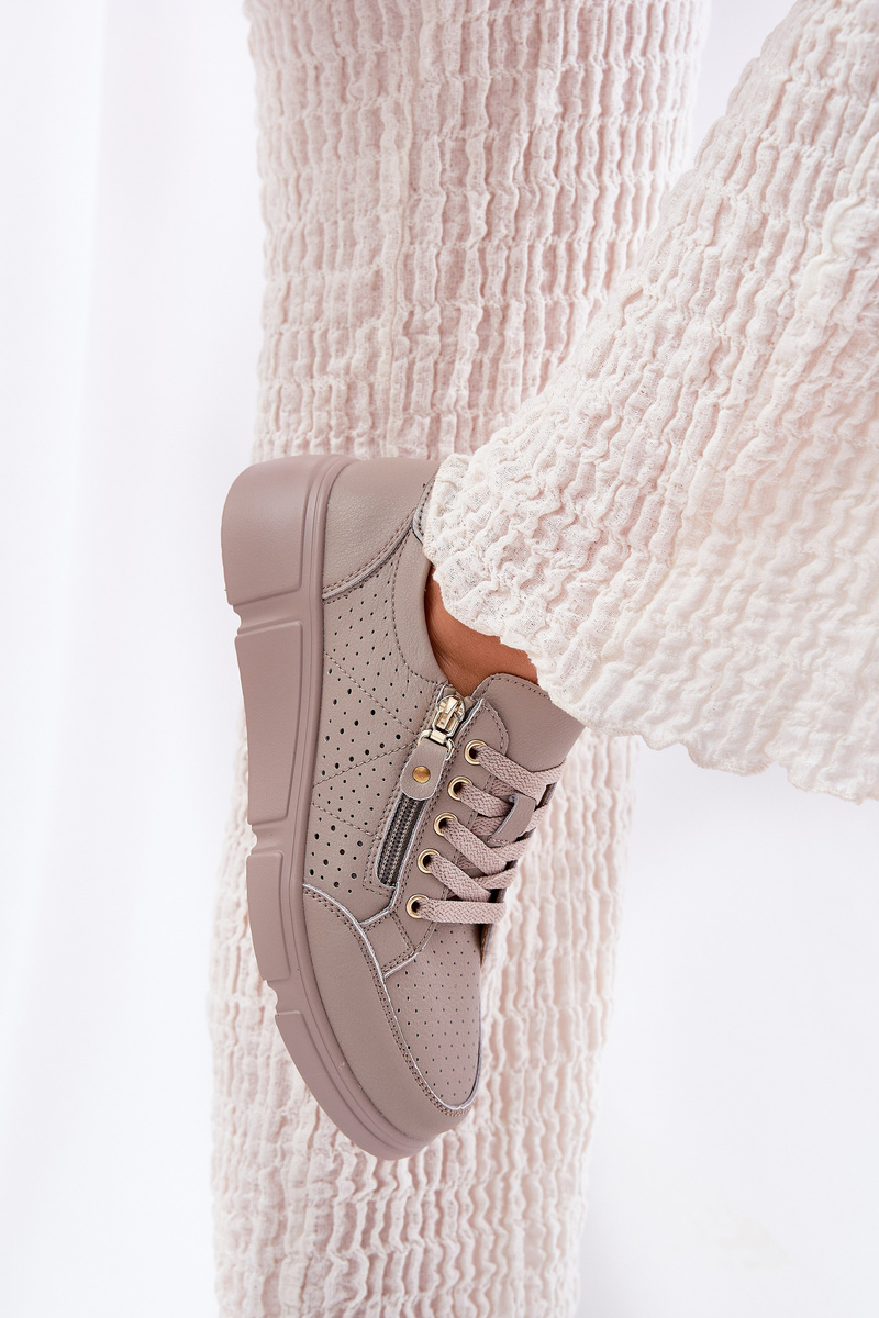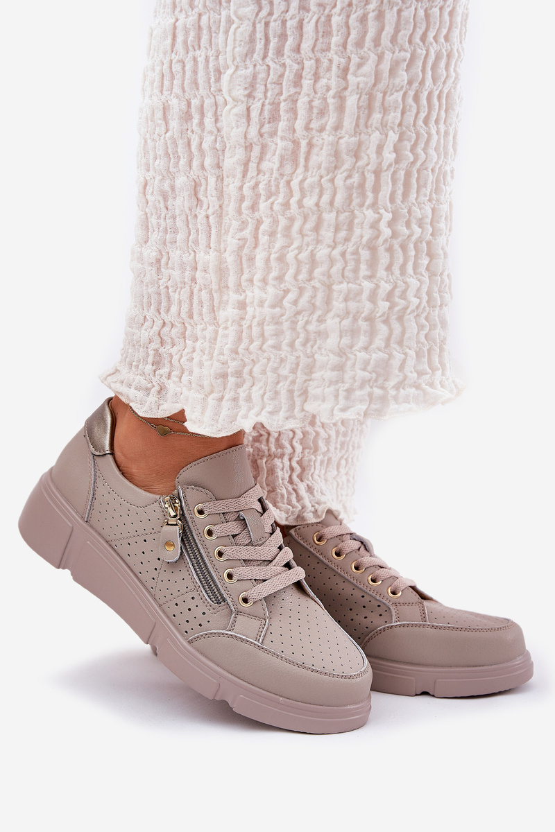 Sneakersy Buty Sportowe Damskie Na Platformie Skórzane Ciemnobeżowe Vinceza 88019
