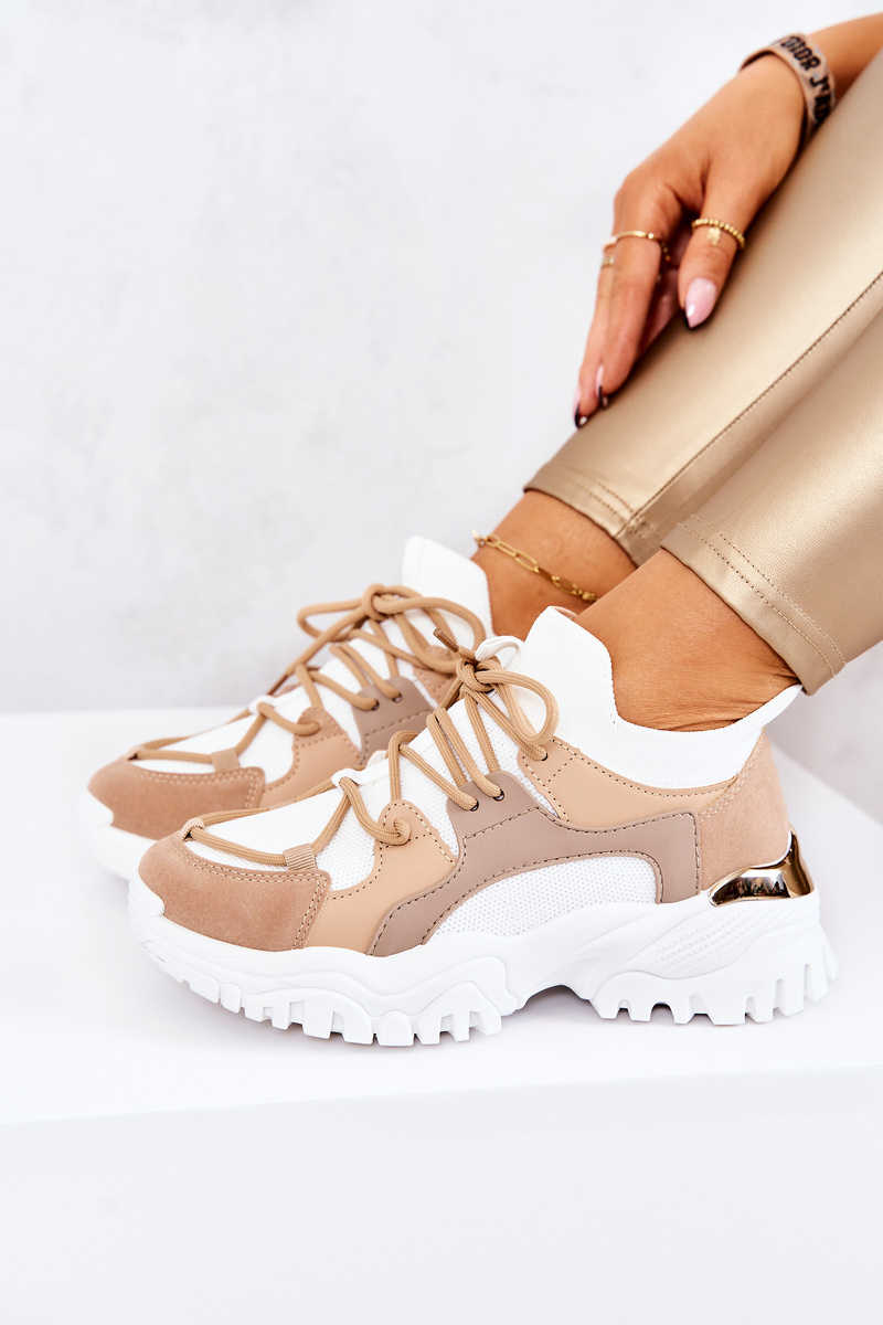 Sneakersy Buty Sportowe Skarpetka Beżowo-Białe Colleen
