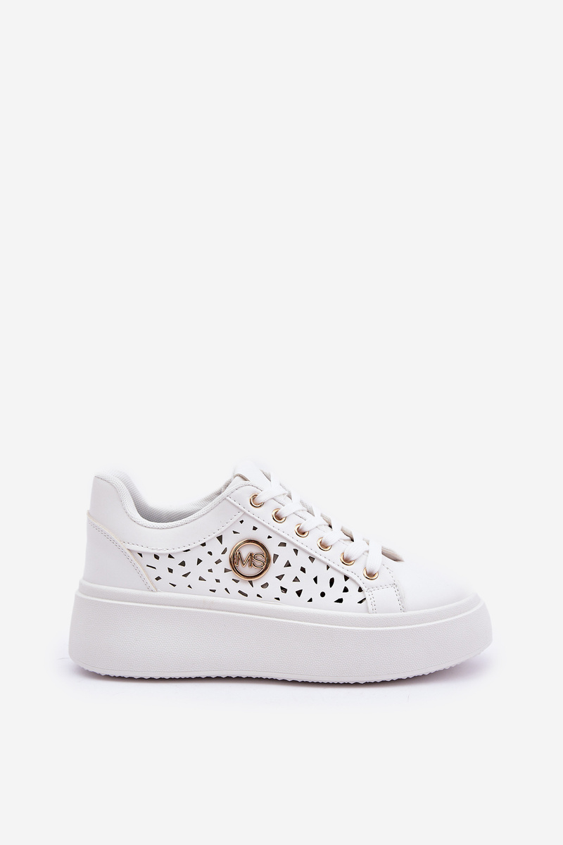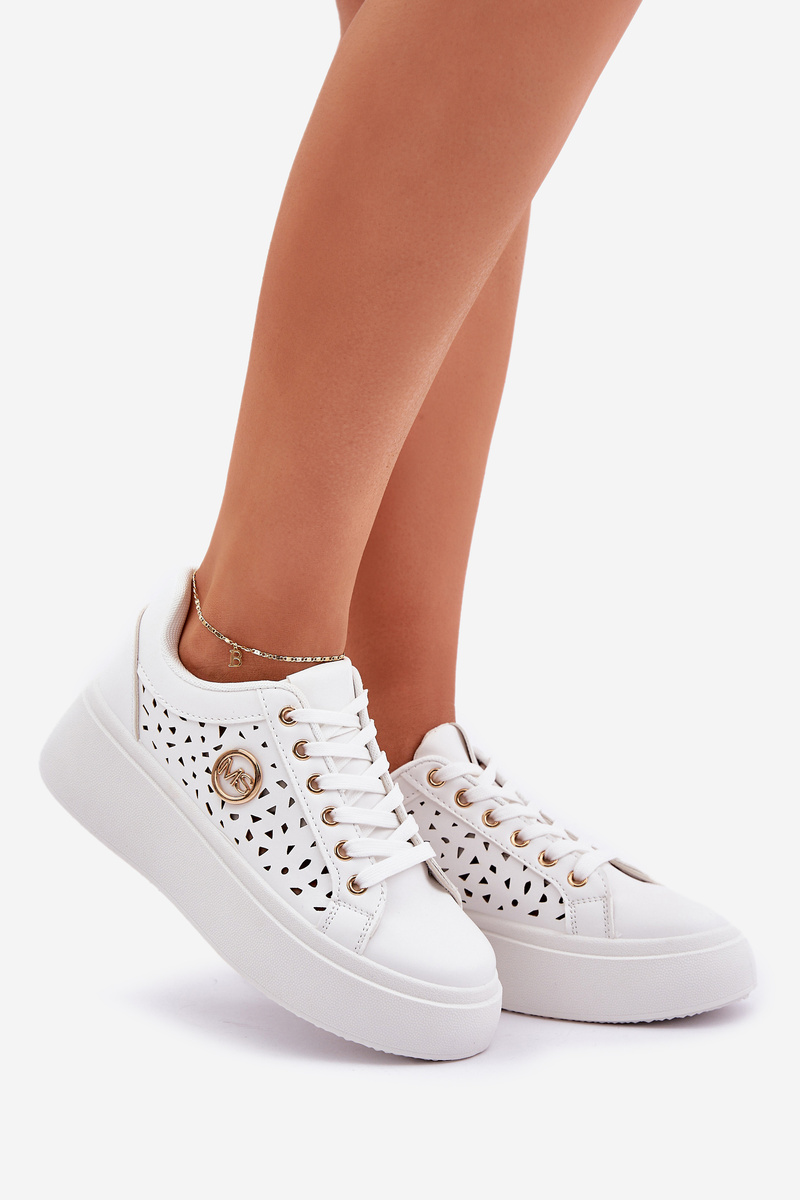 Sneakersy Damskie Ażurowe Ze Złotą Ozdobą Białe Cassildi