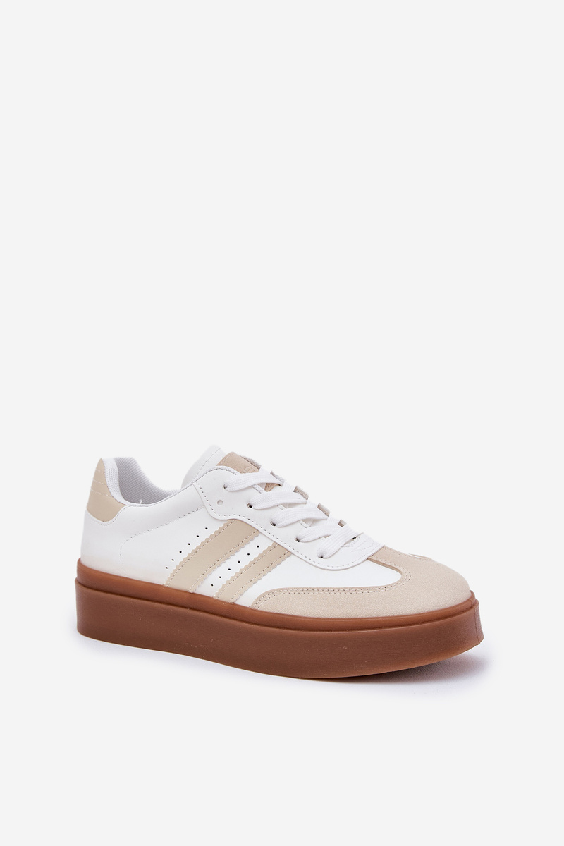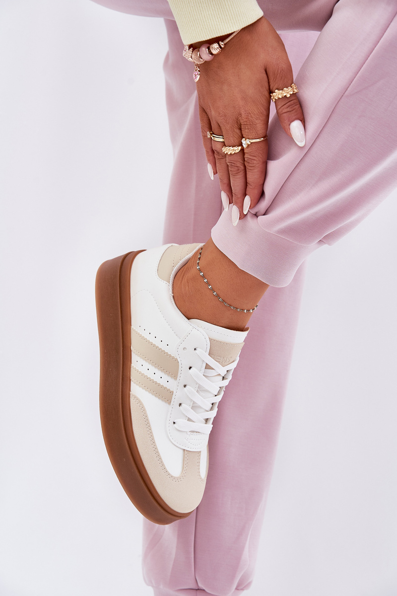 Sneakersy Damskie Eko Skórzane Na Platformie Beżowo-Białe Ediriella