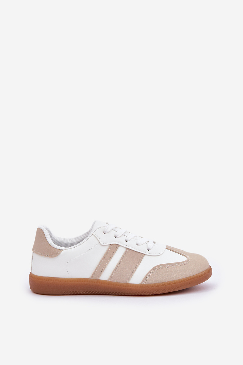 Sneakersy Damskie Niskie Eko Skóra Beżowo-Białe Nonalorin