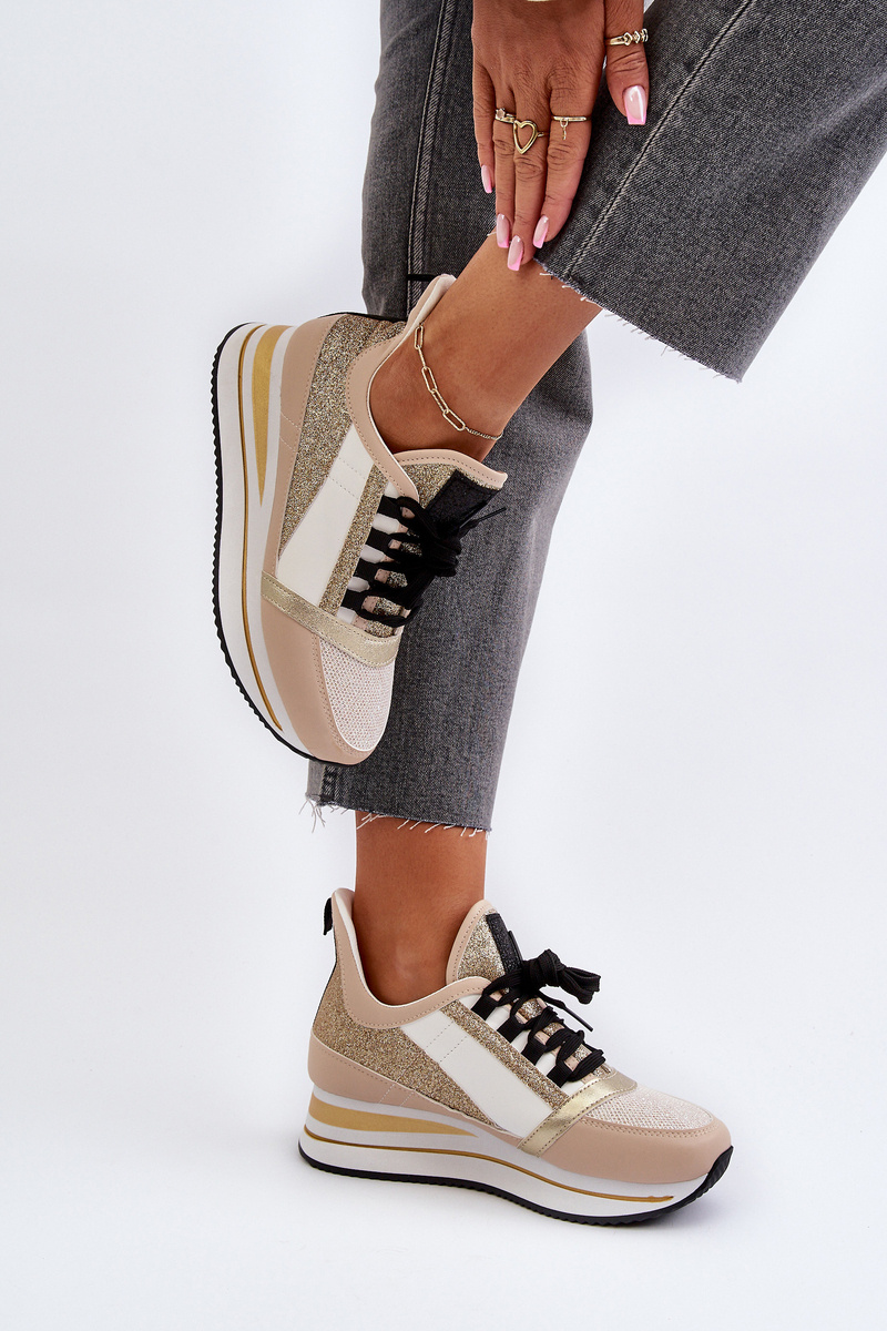 Sneakersy Damskie Platforma Koturn Brokat Rafani Złote A-59
