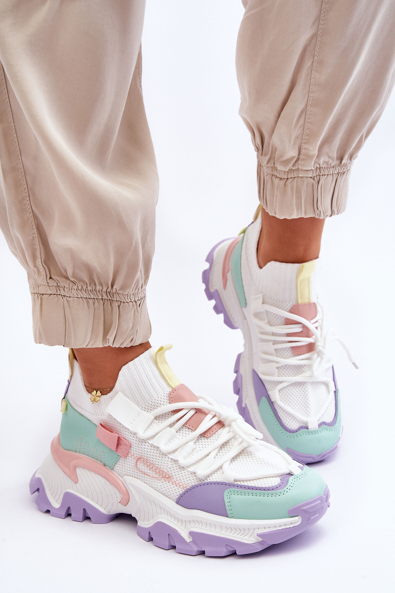 Sneakersy Damskie Skarpetkowe Wsuwane Biało-Fioletowe Keaton BL322P