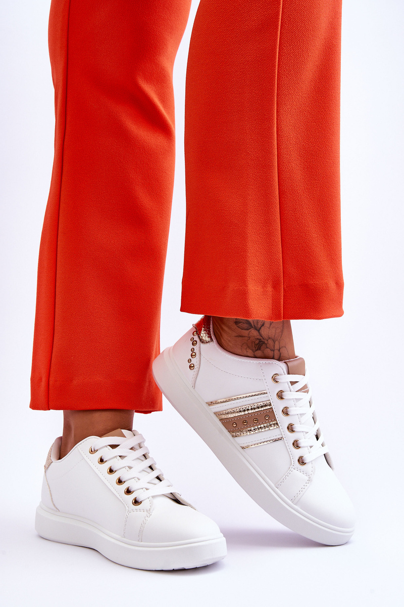 Sneakersy Damskie Skóra Ćwieki Biało-Złote Dory