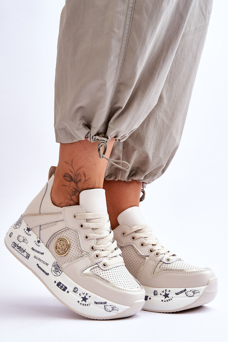 Sneakersy Damskie Skóra Masywna Platforma Beżowe Asturia