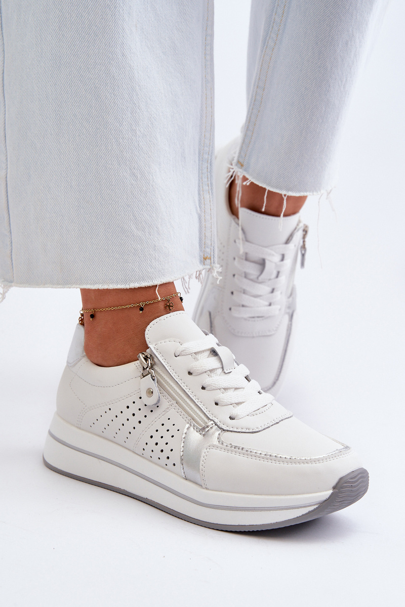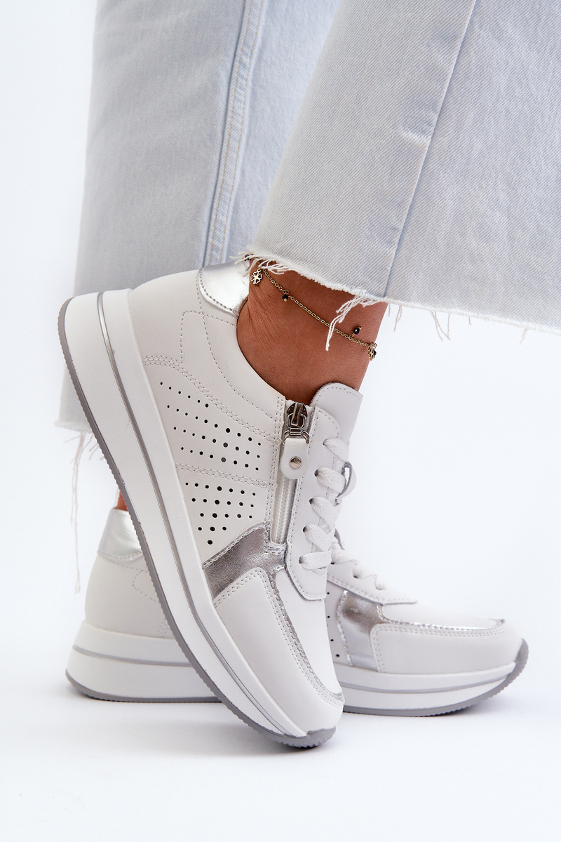 Sneakersy Damskie Skóra Platforma Białe Ligustra 24SP08-6700