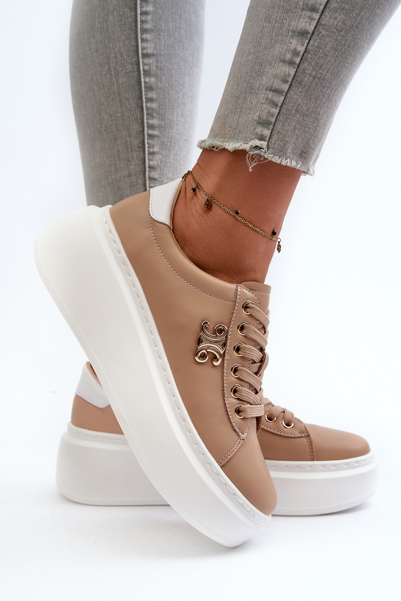 Sneakersy Damskie Skórzane Na Platformie Brązowe