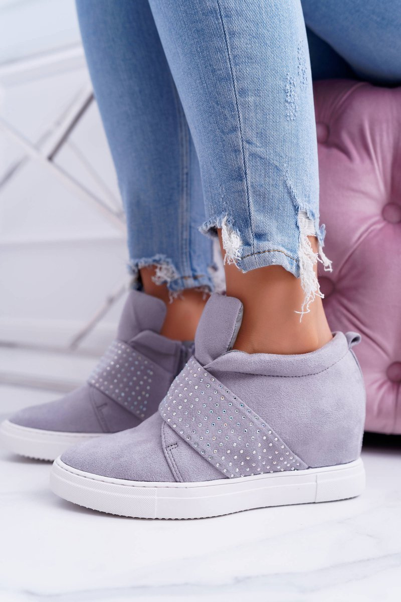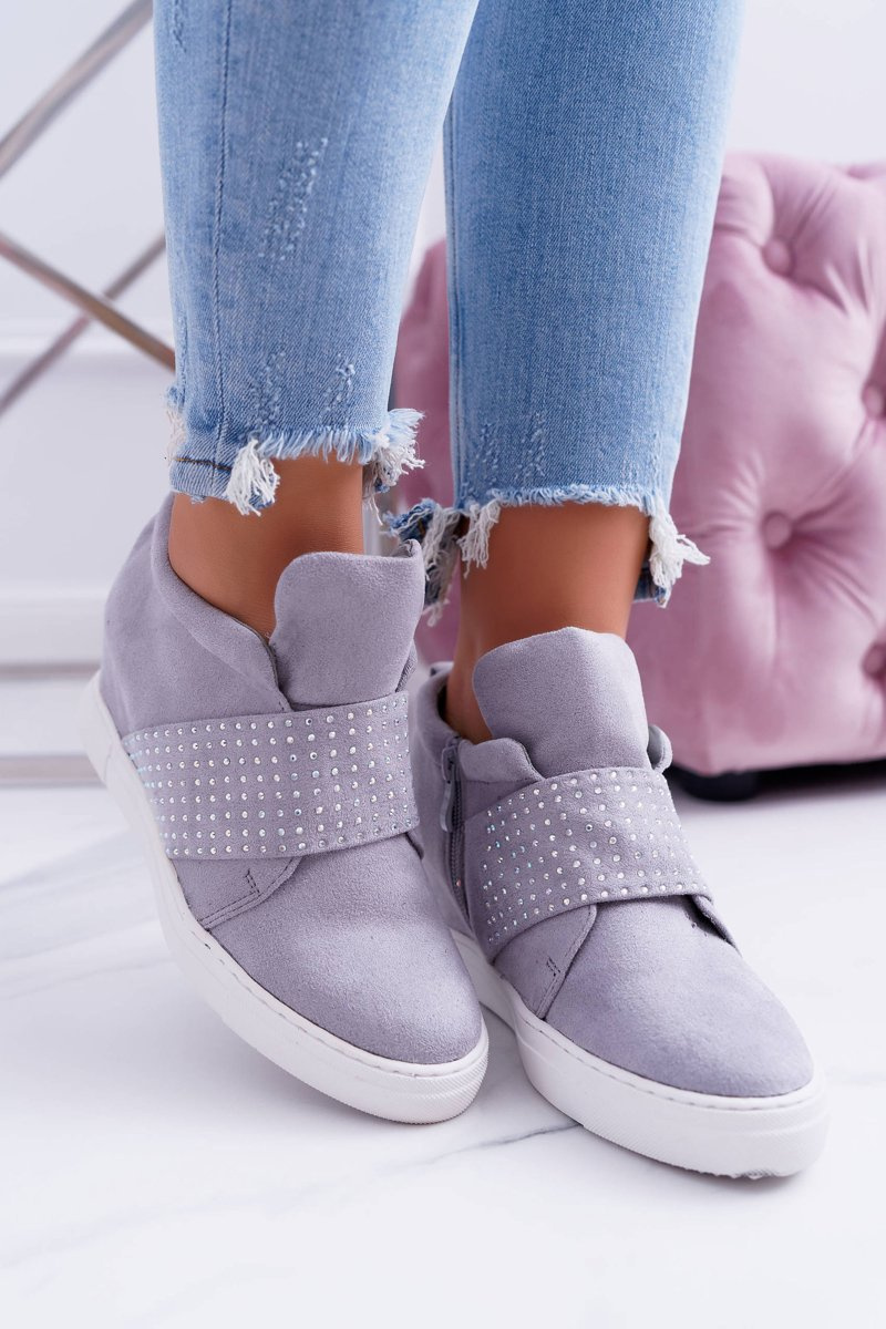 Sneakersy Damskie Szare Trampki Lu Boo Cekiny PinkSugar