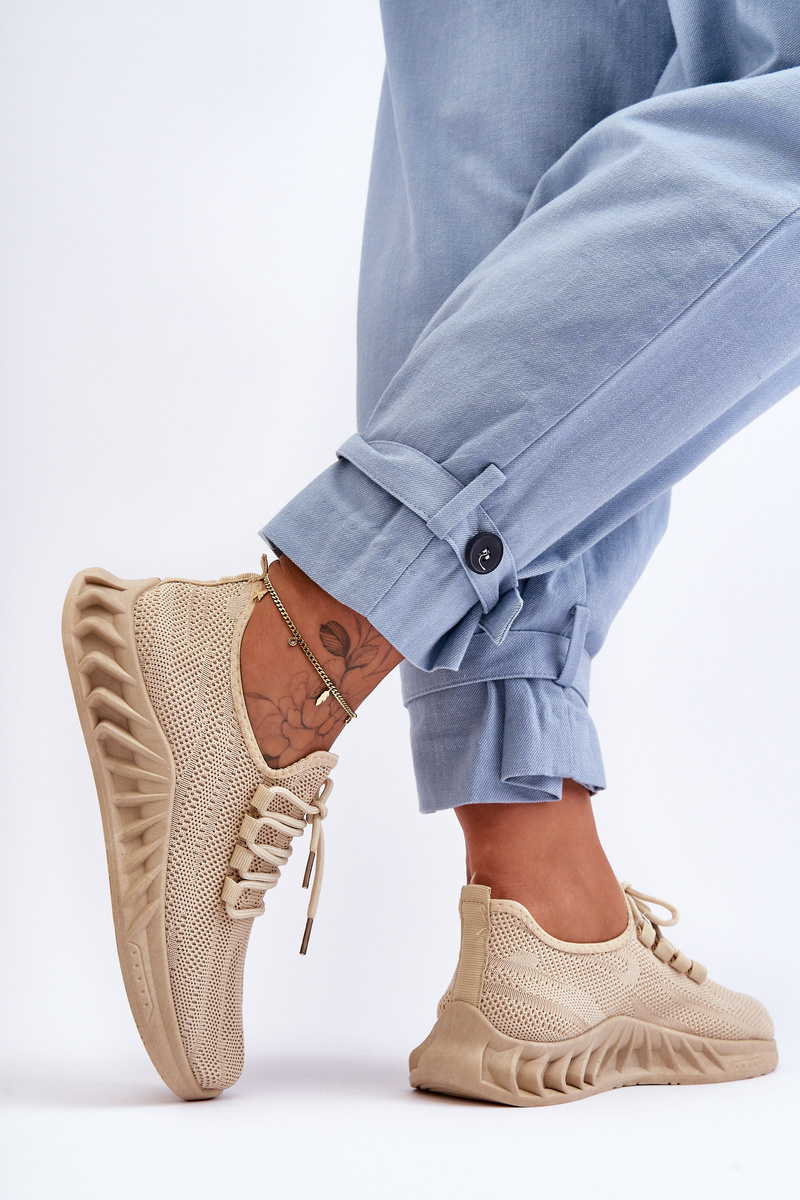Sneakersy Damskie Wsuwane Materiałowe Beżowe Venett TA28