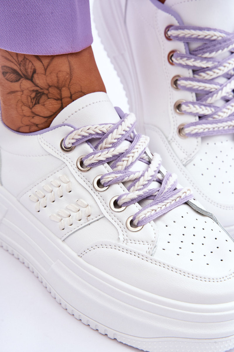 Sneakersy Modne Damskie Platforma Biało-Fioletowe Claribel