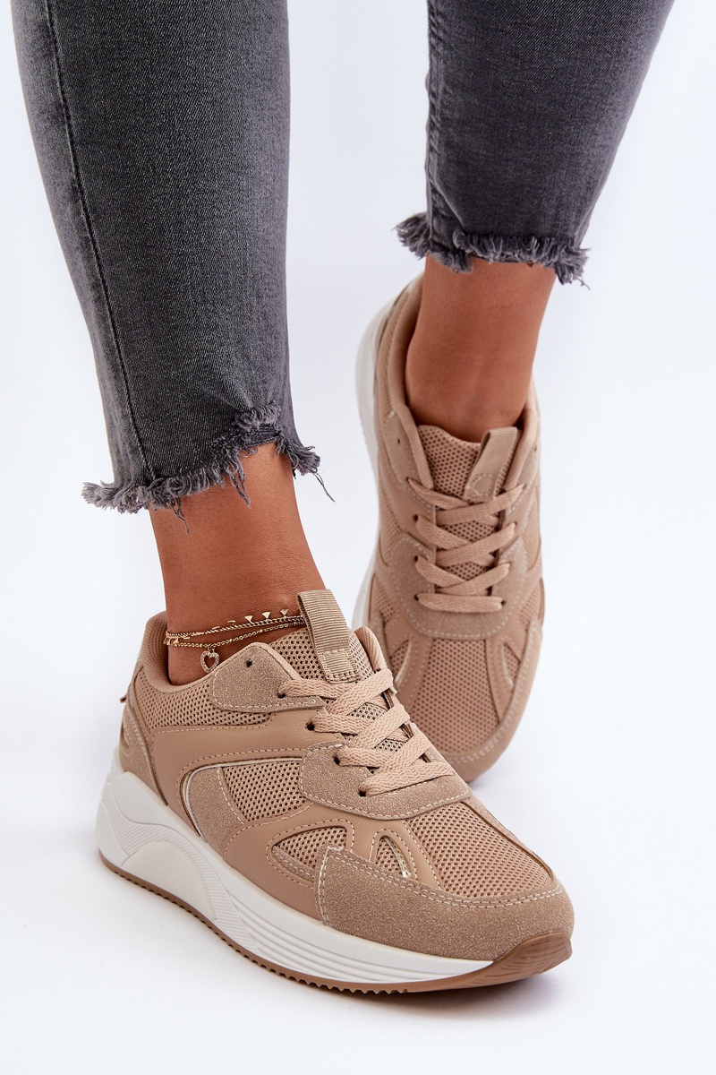 Sneakersy Na Platformie Damskie Beżowe Lenivia 9277
