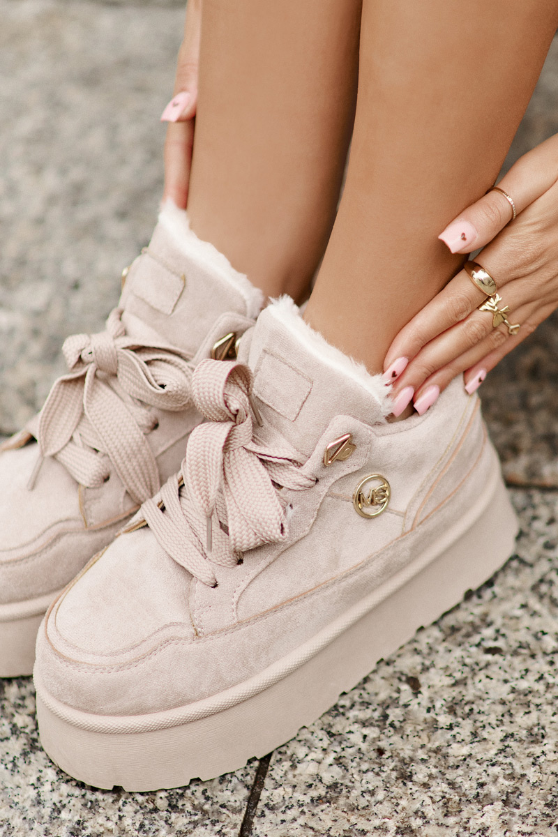 Sneakersy Na Platformie Z Eko Zamszu Ocieplane Futerkiem Beżowe Velarisea