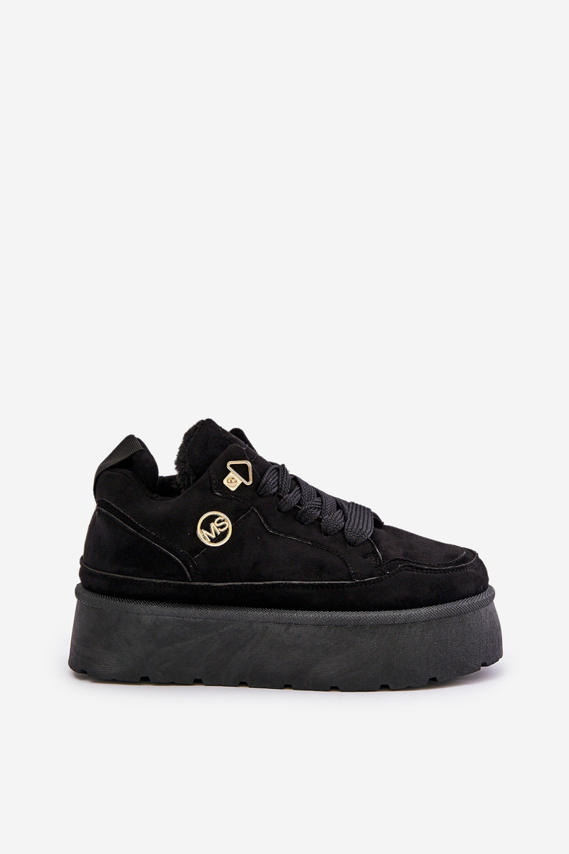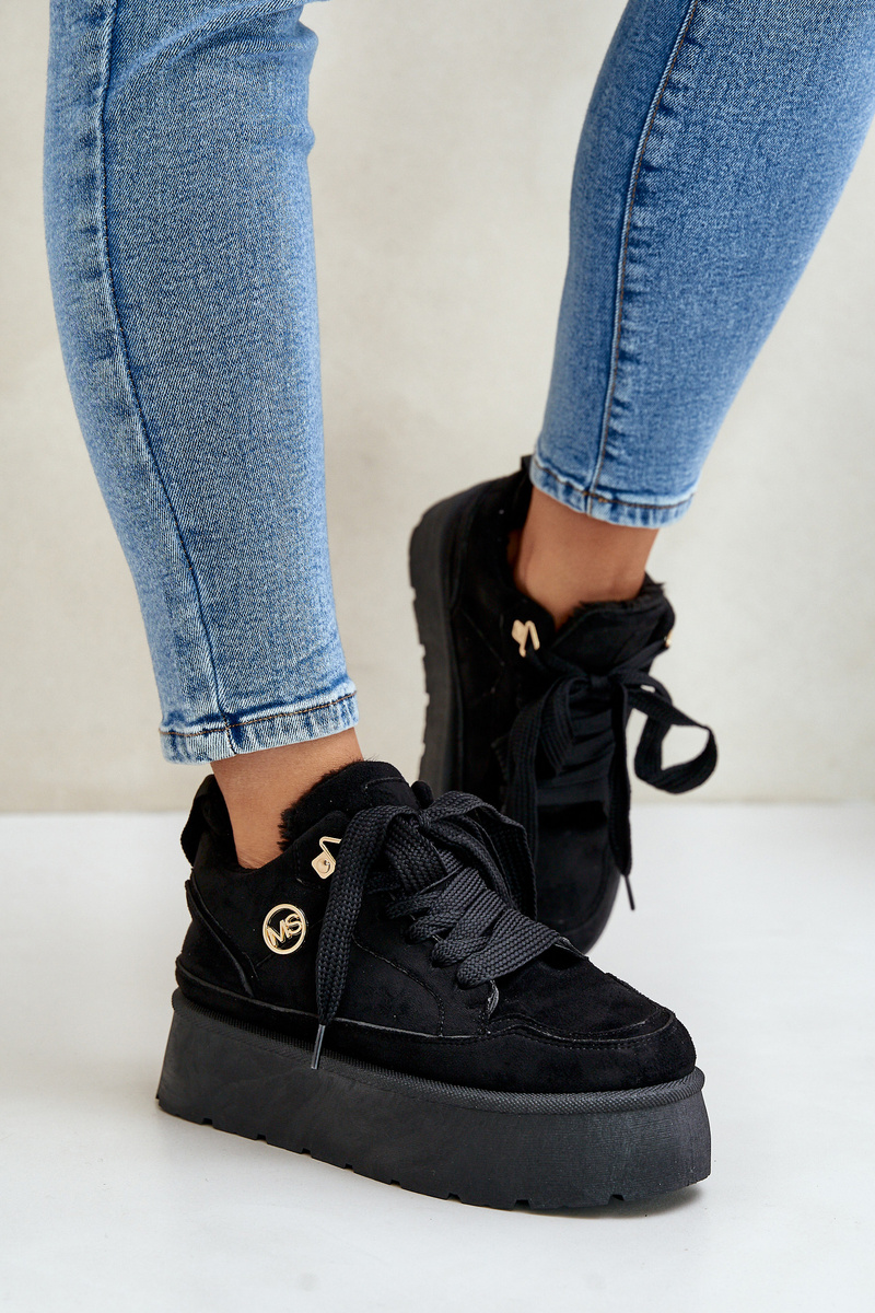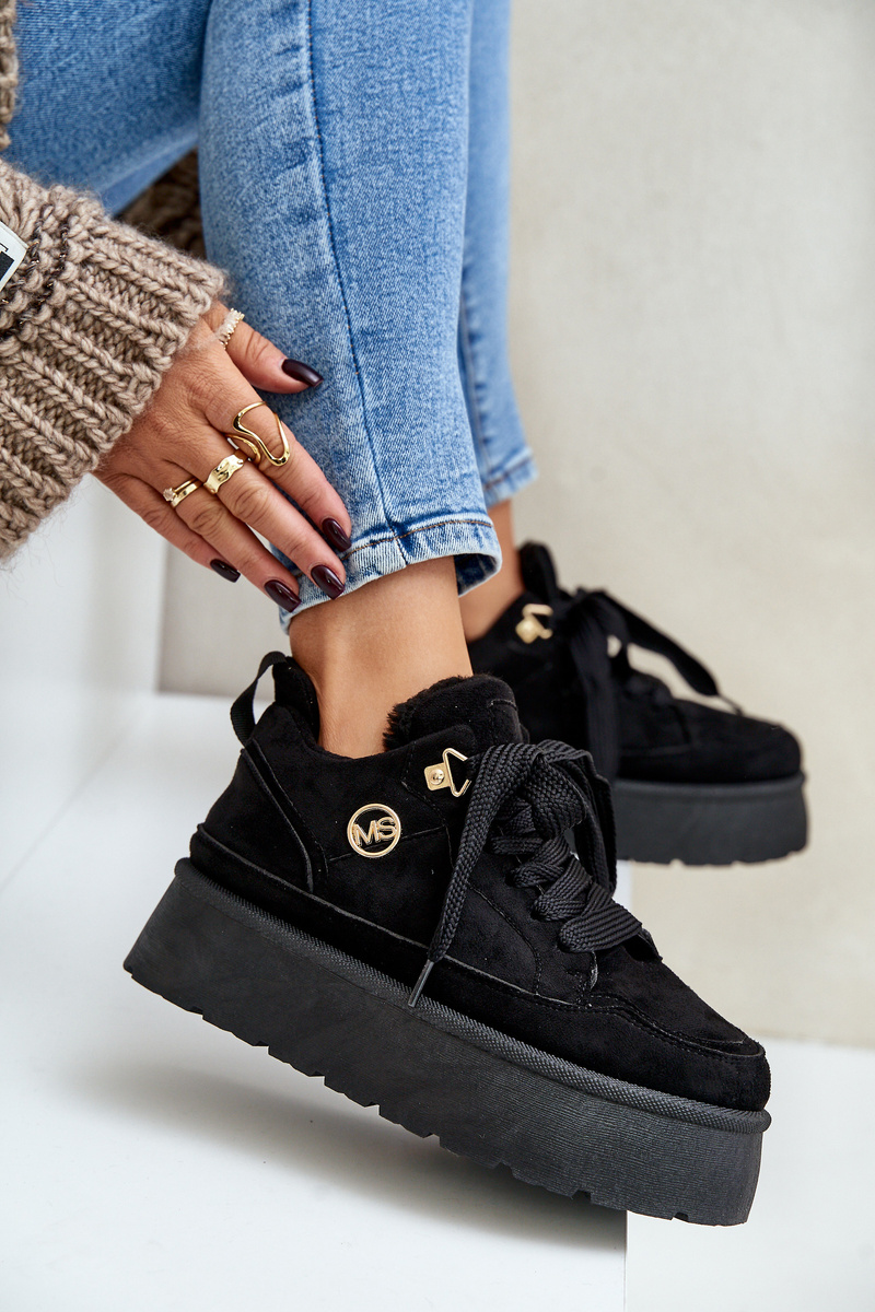 Sneakersy Na Platformie Z Eko Zamszu Ocieplane Futerkiem Czarne Velarisea