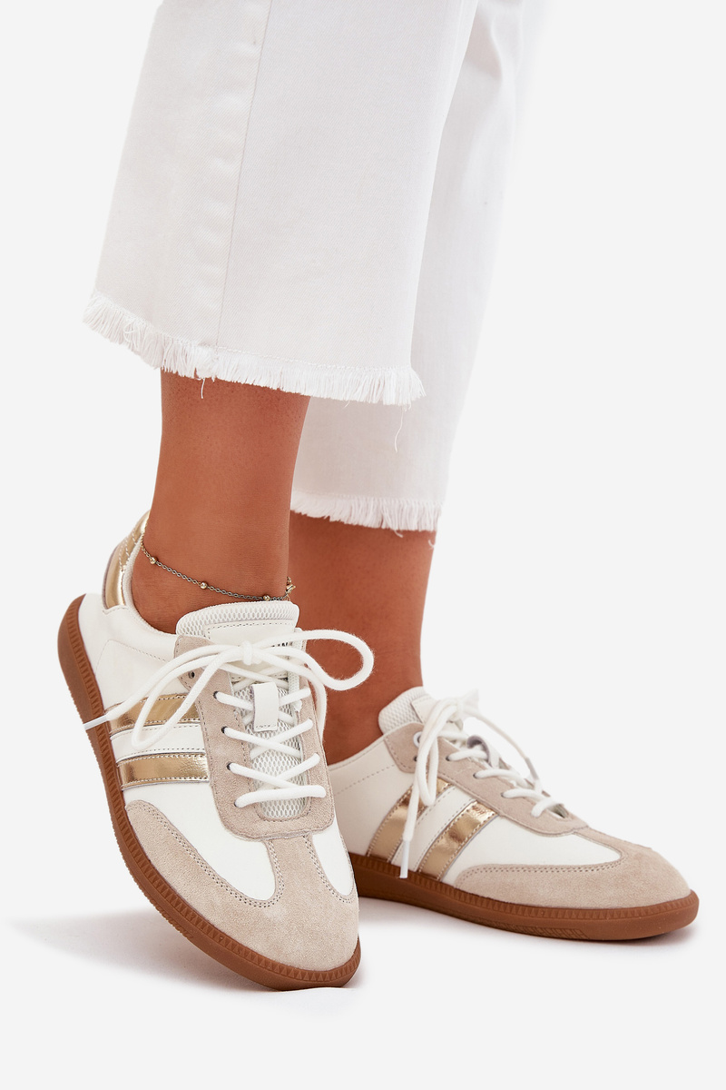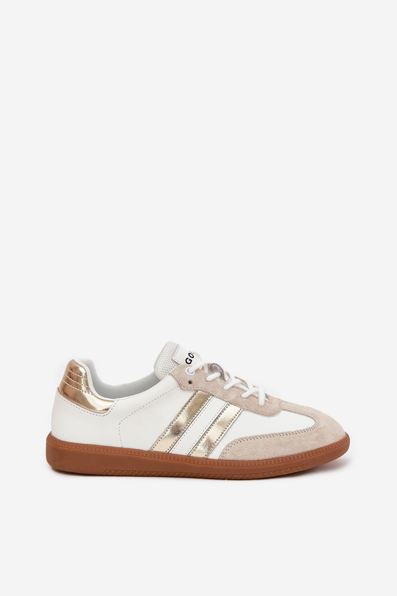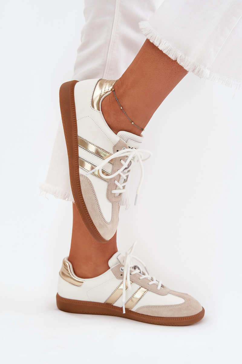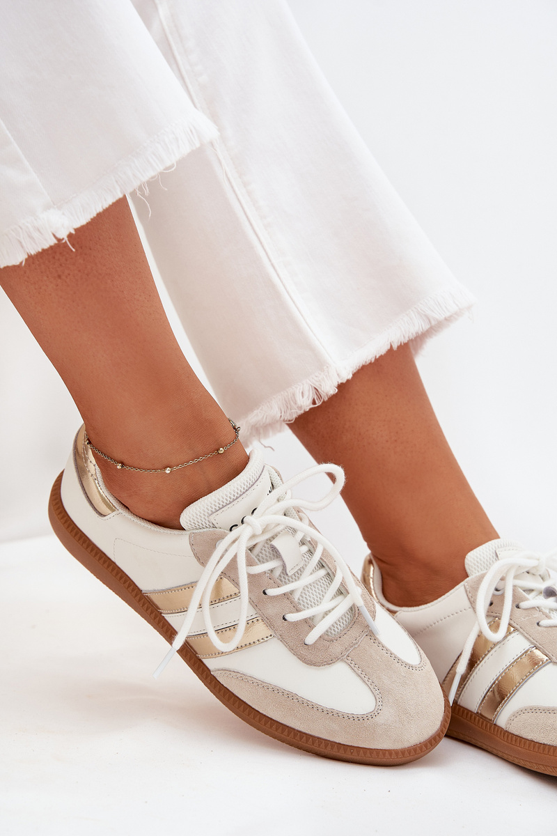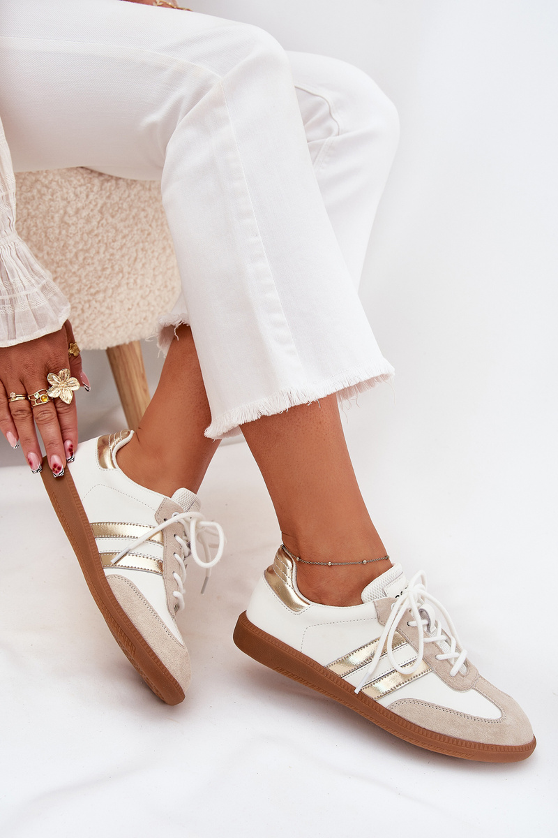 Sneakersy Skóra Naturalna Damskie Biało-Złote Ismina