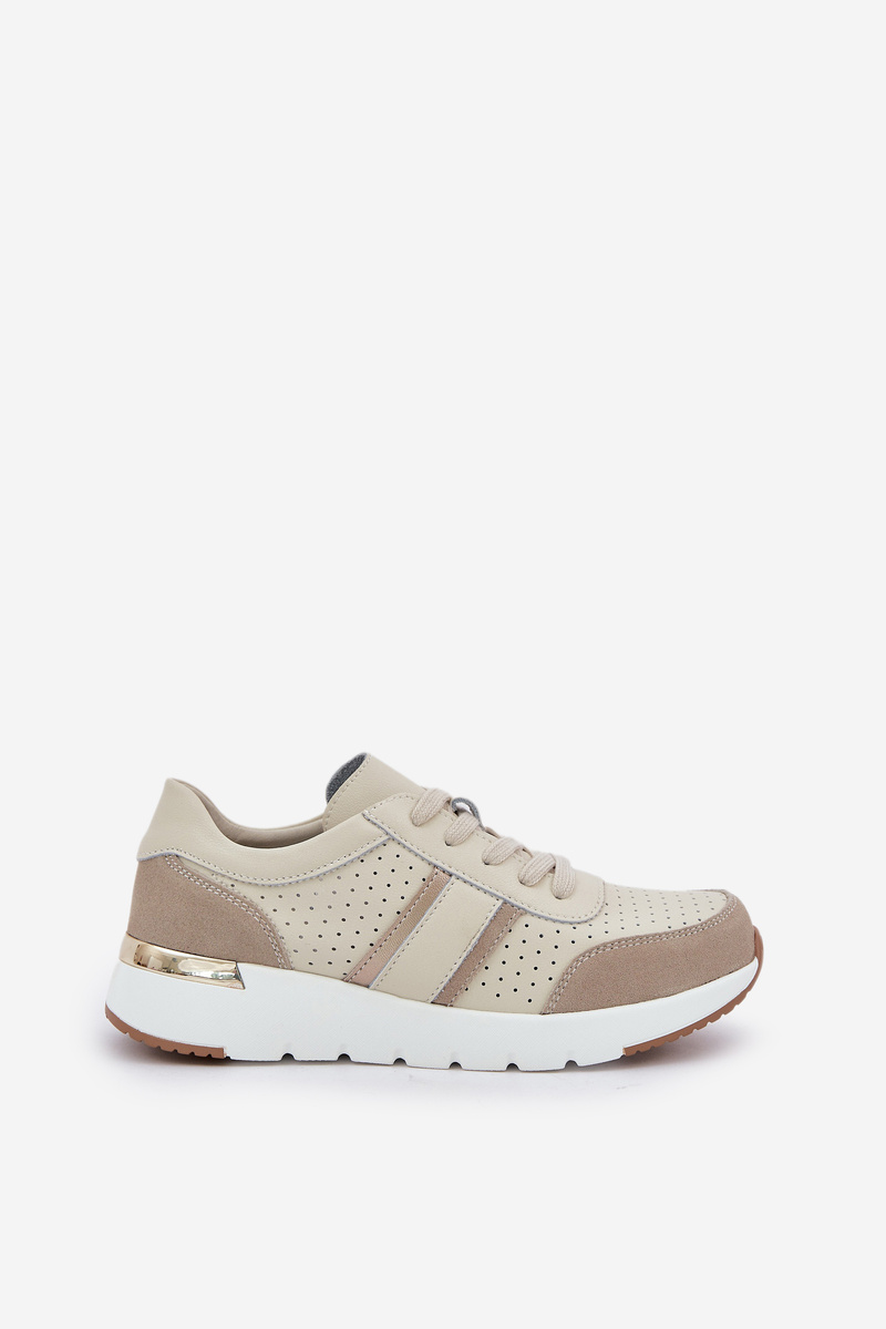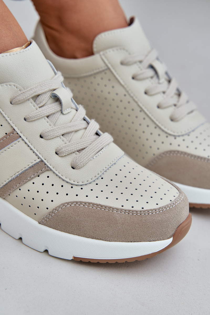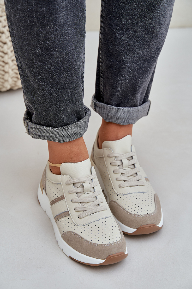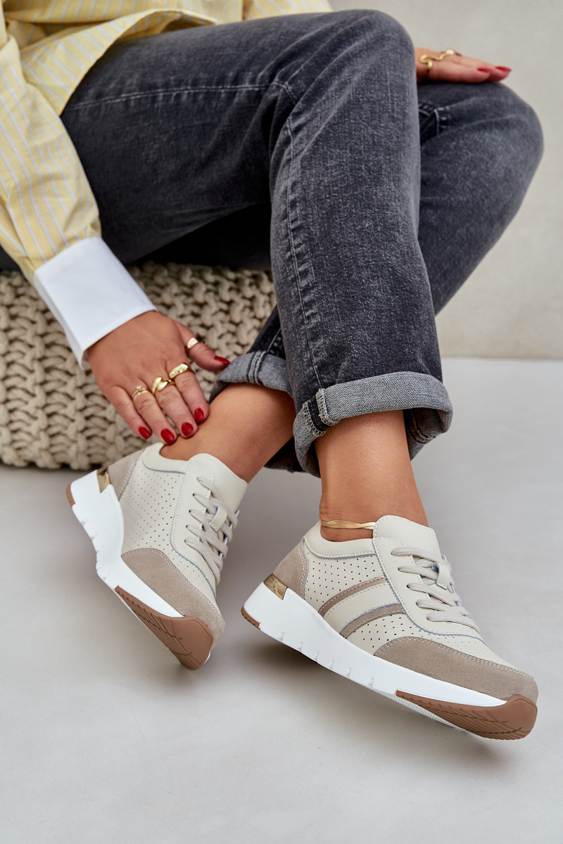 Sneakersy Skóra Naturalna Platforma Damskie Beżowe Norlexia