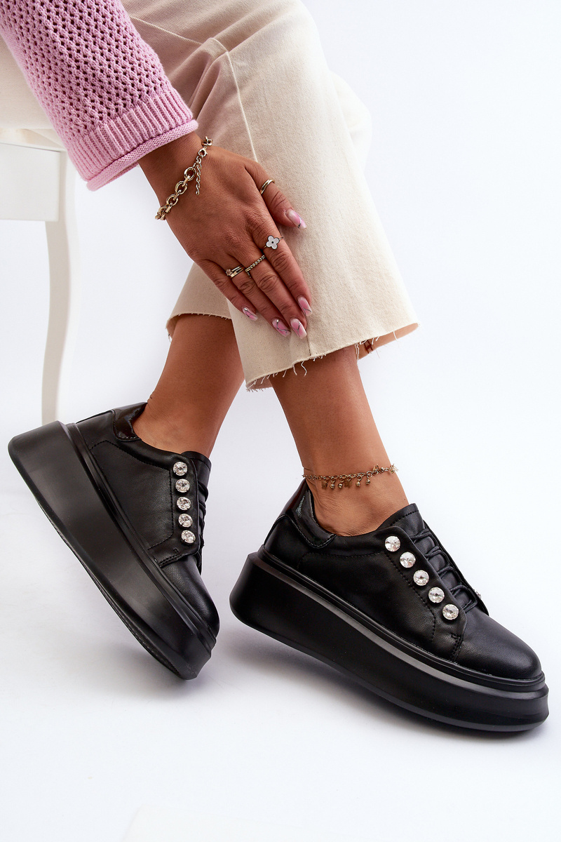 Sneakersy Skórzane Masywna Platforma S.Barski LR628 Czarne