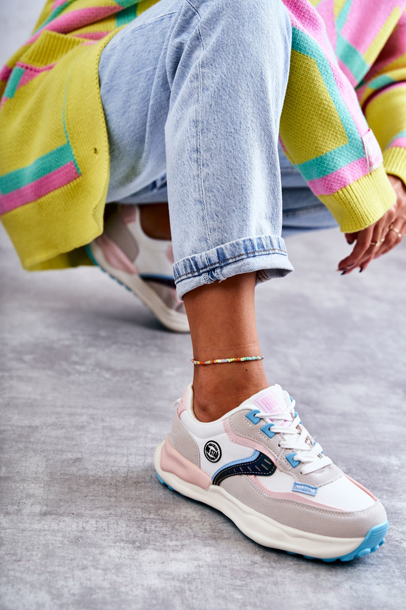 Sneakersy Sportowe Damskie Biało-Różowe Big Star KK274097