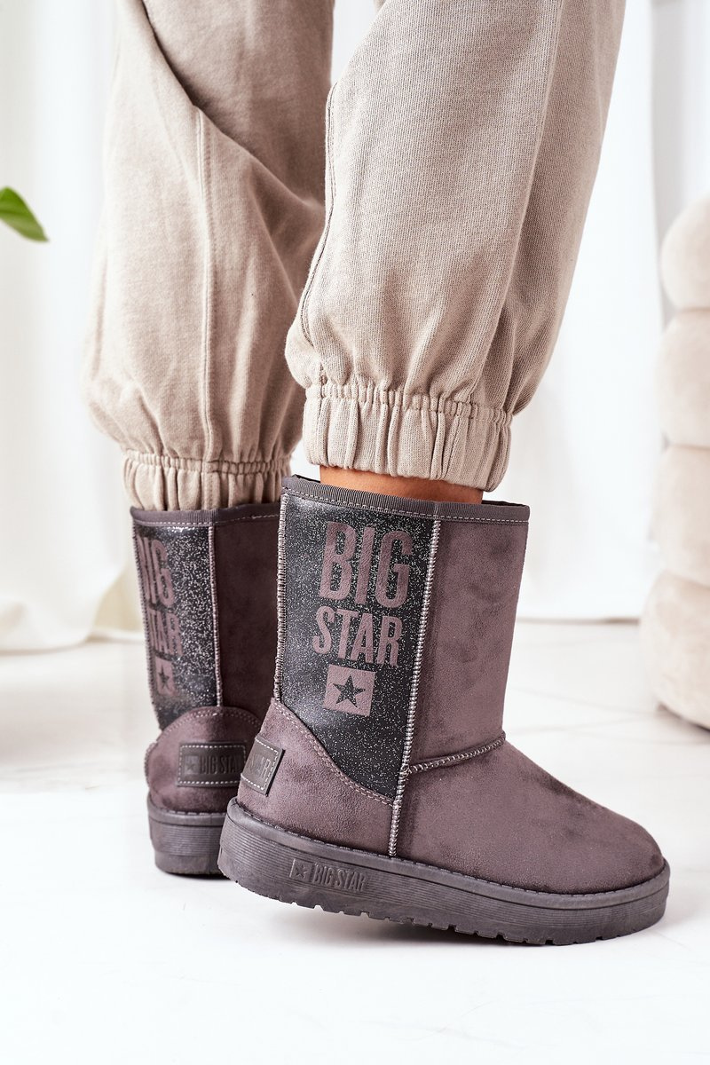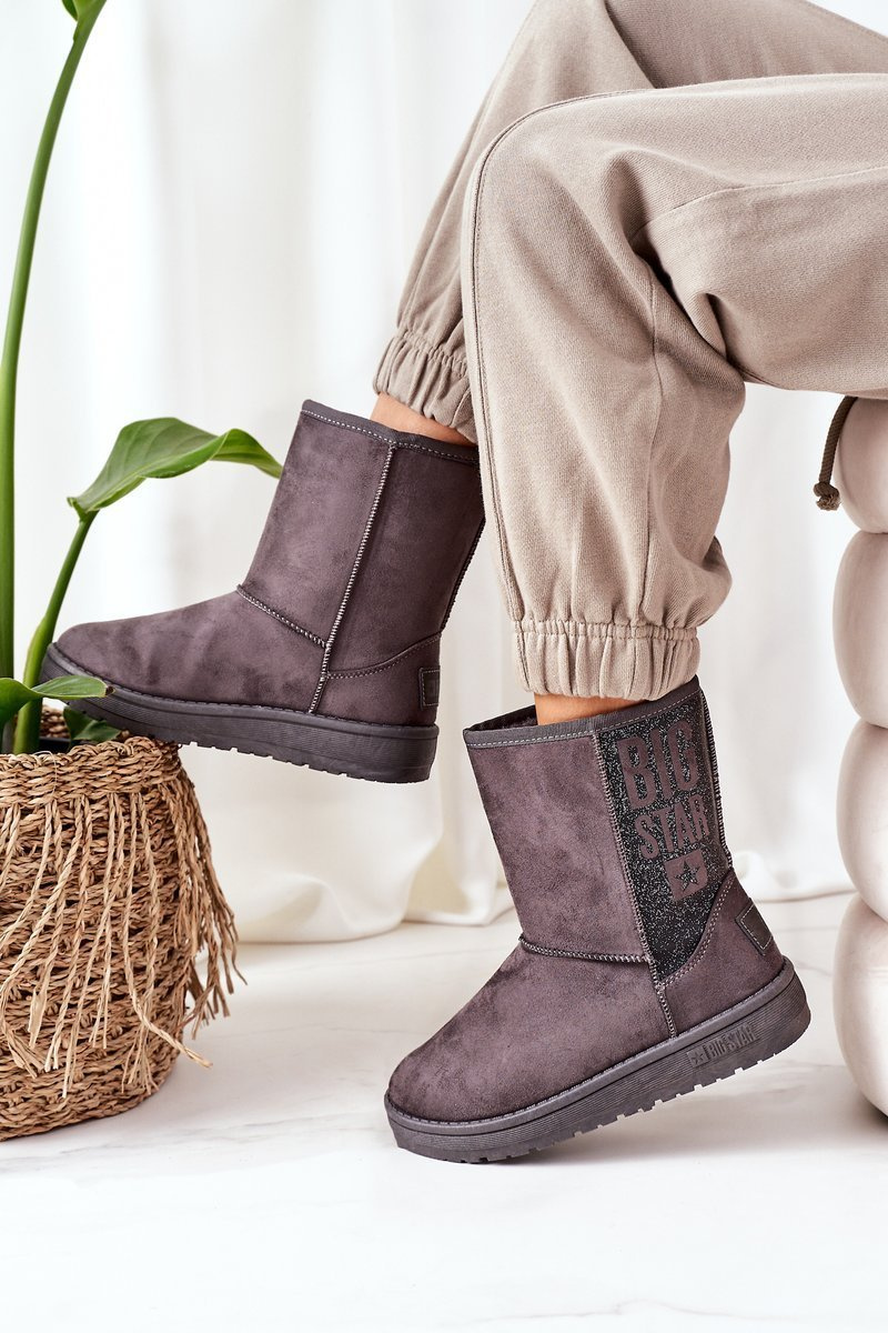 Idealnymi butami na mroźne dni są śniegowce! Cechują się wygodą, a dzięki odpowiednio dobranym materiałom są odporne na mróz i zapewniają optymalny komfort termiczny. Stabilna podeszwa zapobiega ślizganiu się po mokrych nawierzchniach. Wykonane z eko zamszowej skóry. Posiadają ocieplenie w postaci futerka. Buty posiadają ozdobne logo marki Big Star na cholewce.