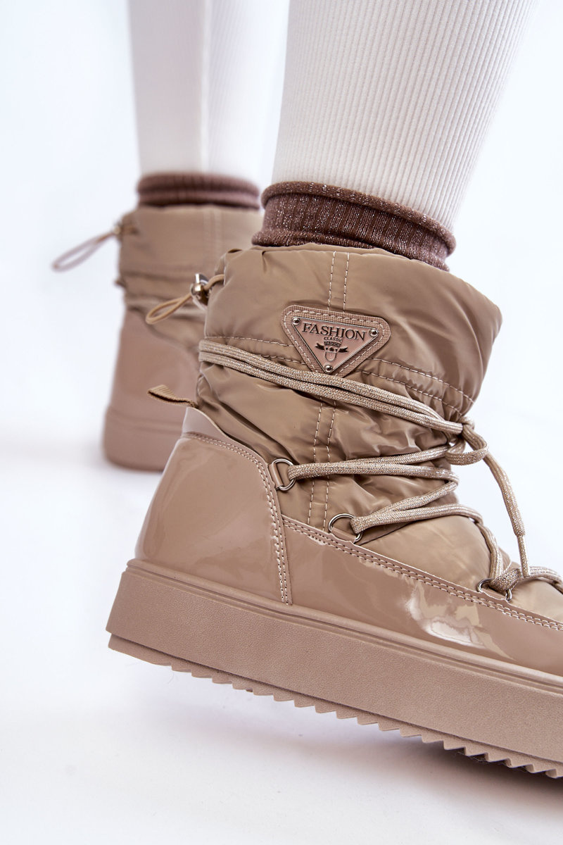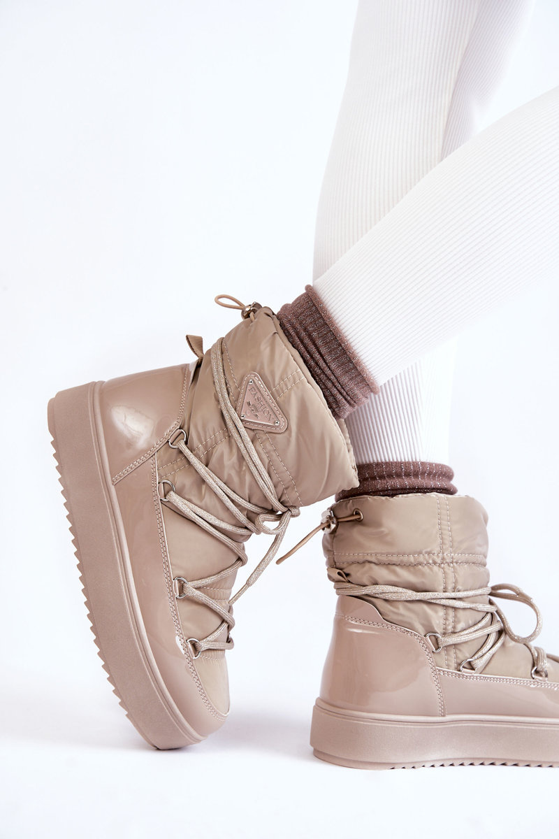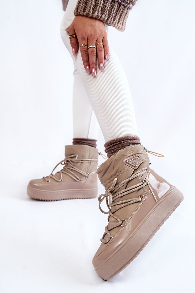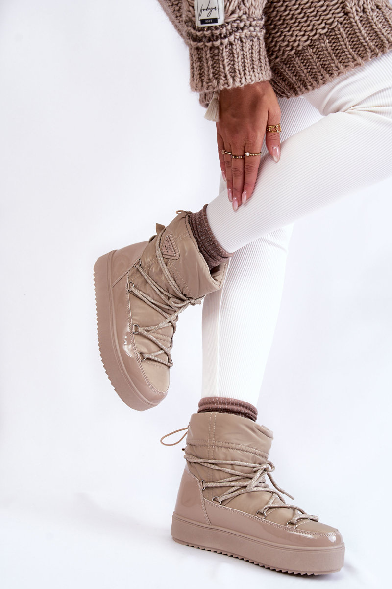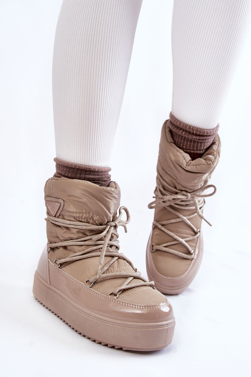 Śniegowce Damskie Modne Sznurowane Beżowe Carrios