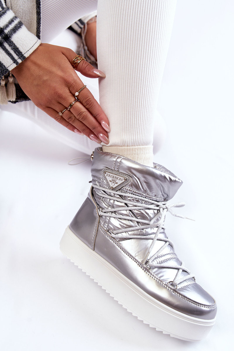 Śniegowce Damskie Modne Sznurowane Srebrne Carrios