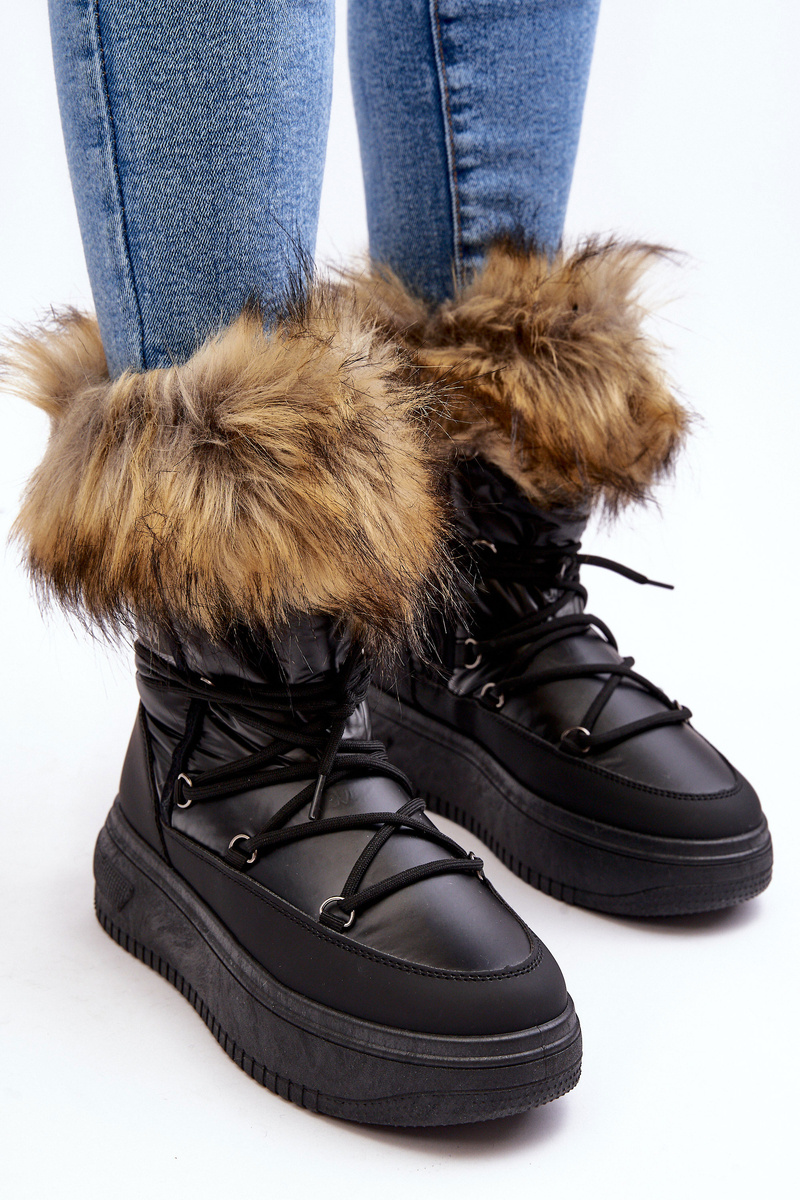 Śniegowce Damskie Sznurowane Futerko Czarne Nabilla 23SN26-6567