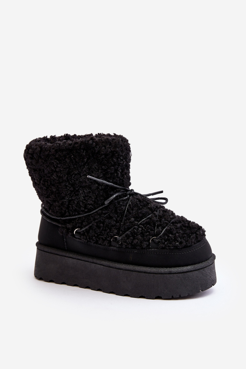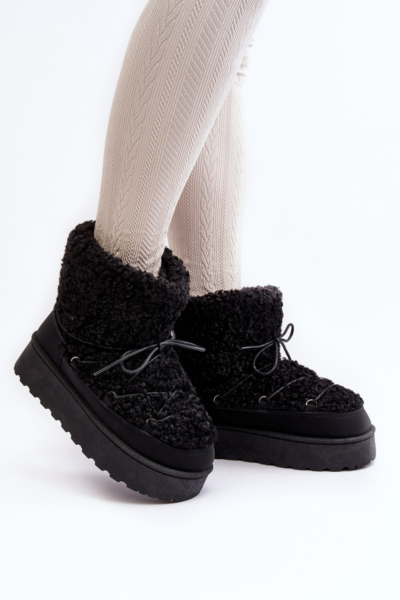 Śniegowce Damskie Wiązane Gruba Podeszwa Czarne Loso 20223-4A